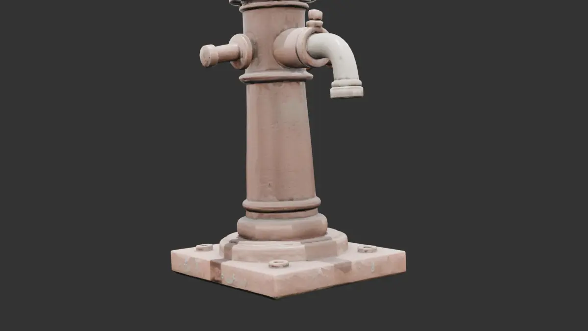 This detailed 3D model depicts an old manual water pump commonly found in rural or historical environments. The model includes a cast iron pump body, curved handle, and a base plate designed for mounting onto stone or wooden platforms. Carefully textured with rust, scratches, and water stains, the asset delivers a strong sense of realism suitable for use in post-apocalyptic scenes, rustic villages, or historic urban props. It serves well in farmyards, abandoned houses, or as a decorative object in gardens. The design is optimized for real-time rendering and compatible with engines like Unity and Unreal Engine. Perfect for artists who want to inject nostalgic or survivalist themes into their environments.