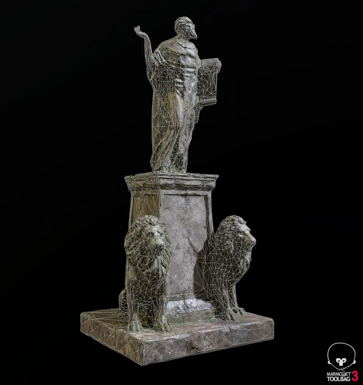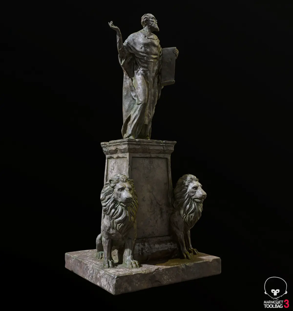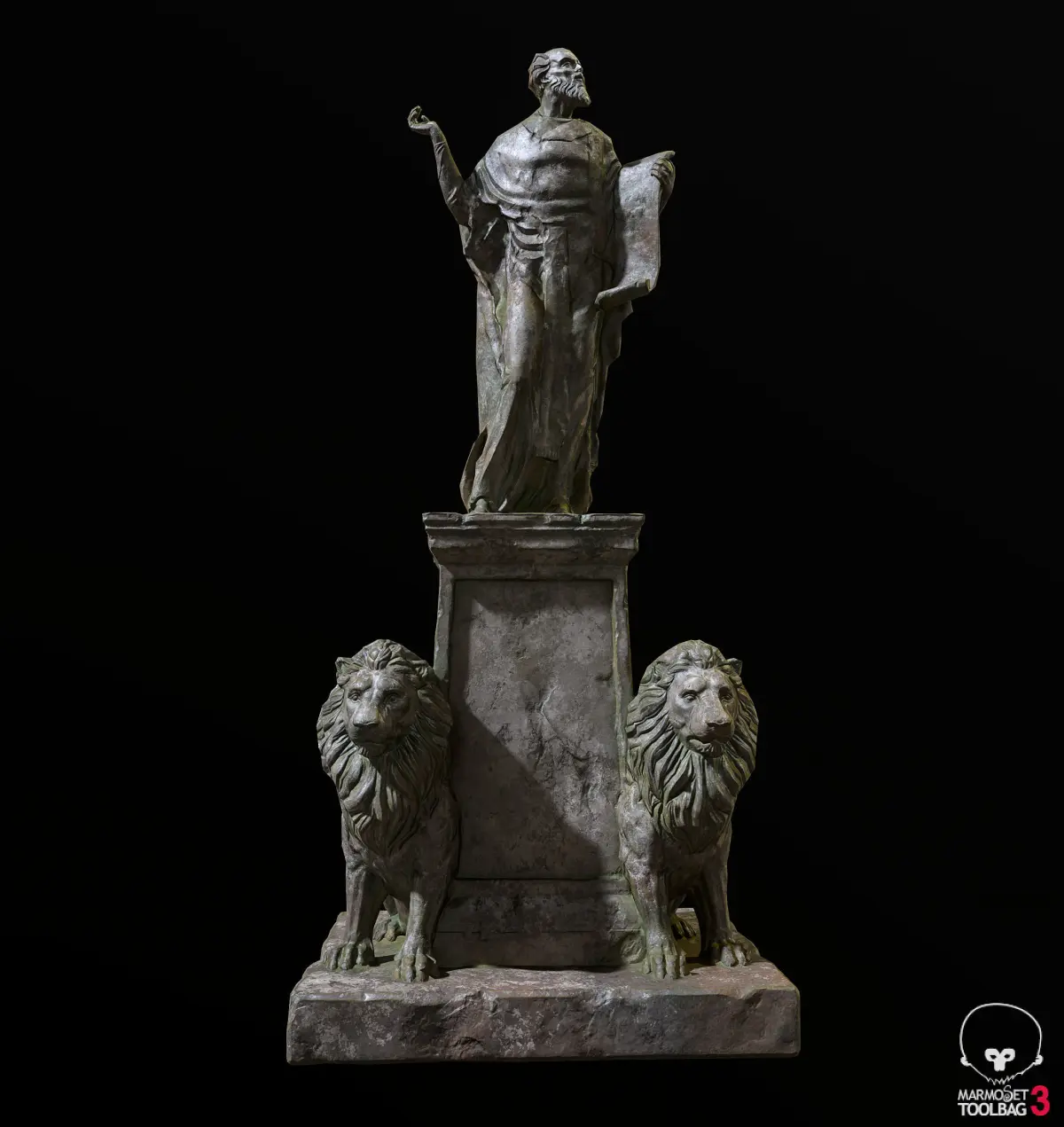 Old Sage statue with two lions. Baked normals, UVW unwrapped, PBR-maps. No plugins used8993 Poligons, 4498 Vertices