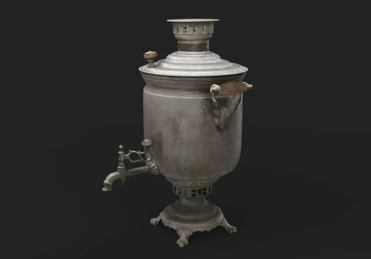 Old Samovar 3d model. It contains low poly, and high-poly meshes, 4K PBR pipeline textures, Game Ready model.