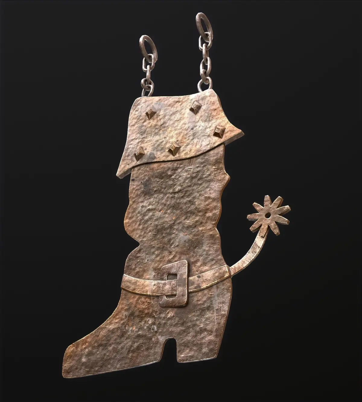 This sign with a boot gives the scene an atmosphere of the past. This asset can be used for 3rd person, first person games and movies thanks to highly detailed 8K textures.