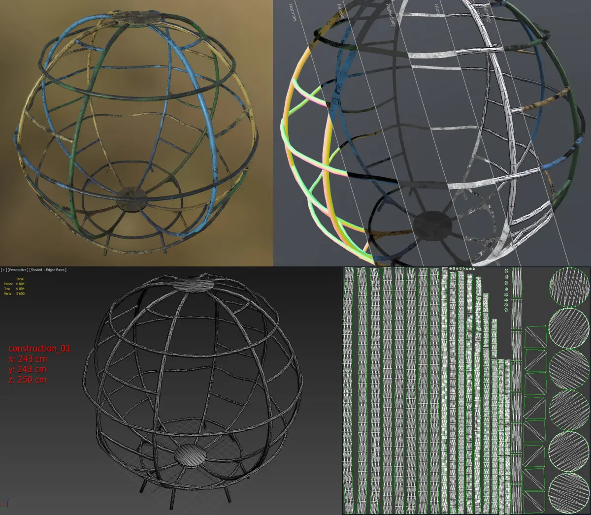 Set of old Soviet children's playground. 20 fbx files contain 33 separate low-poly models. All models ready for use in game engines such as Unity3d, Unreal Engine 4, CryEngine 5. Normal map was baked from a high poly model. The textures of the model are applied with UV Unwrap. Units used: cm Including OBJ, FBX formats and textures (4096x4096) TGA, TIF