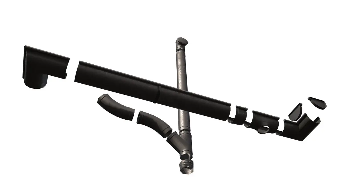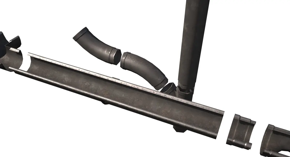 PBR 3D model of Low poly steel gutter system. Product's features: