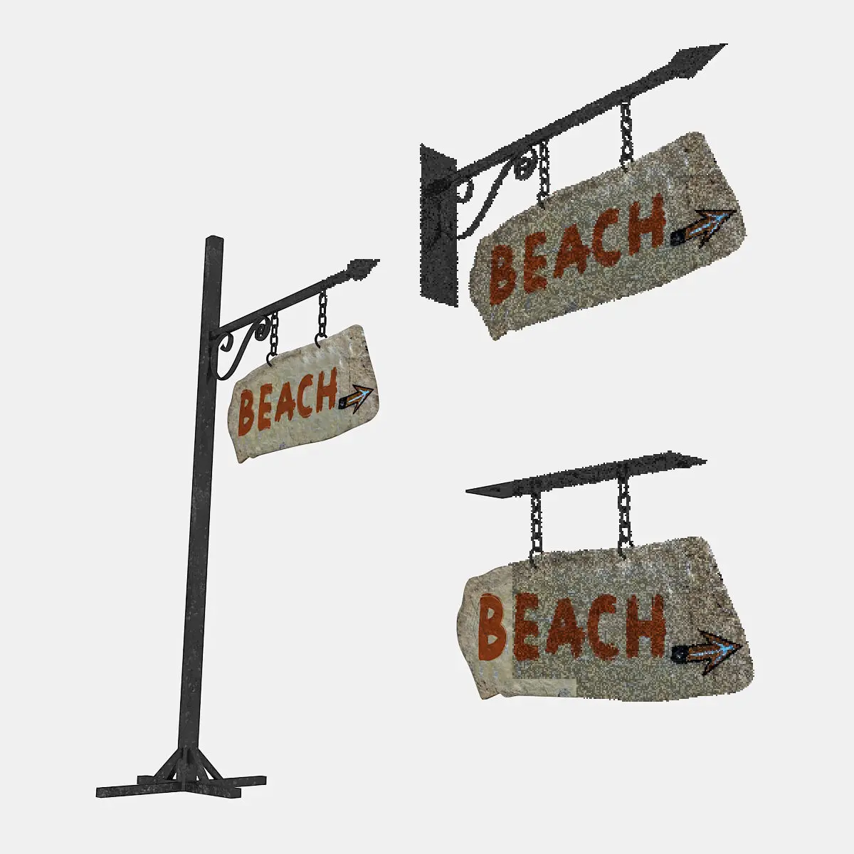 old stone beach sign 02 3D model Low-poly 3D model
