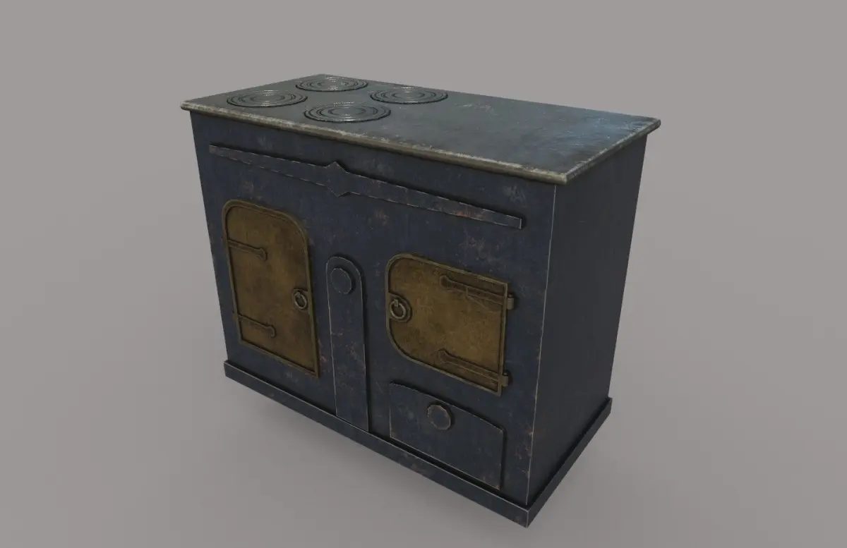 3D Low-poly Old Stove modeled in Maya and textured in Substance Painter, ready for games.