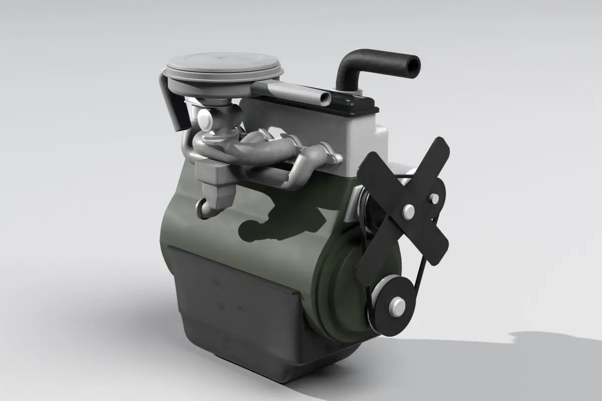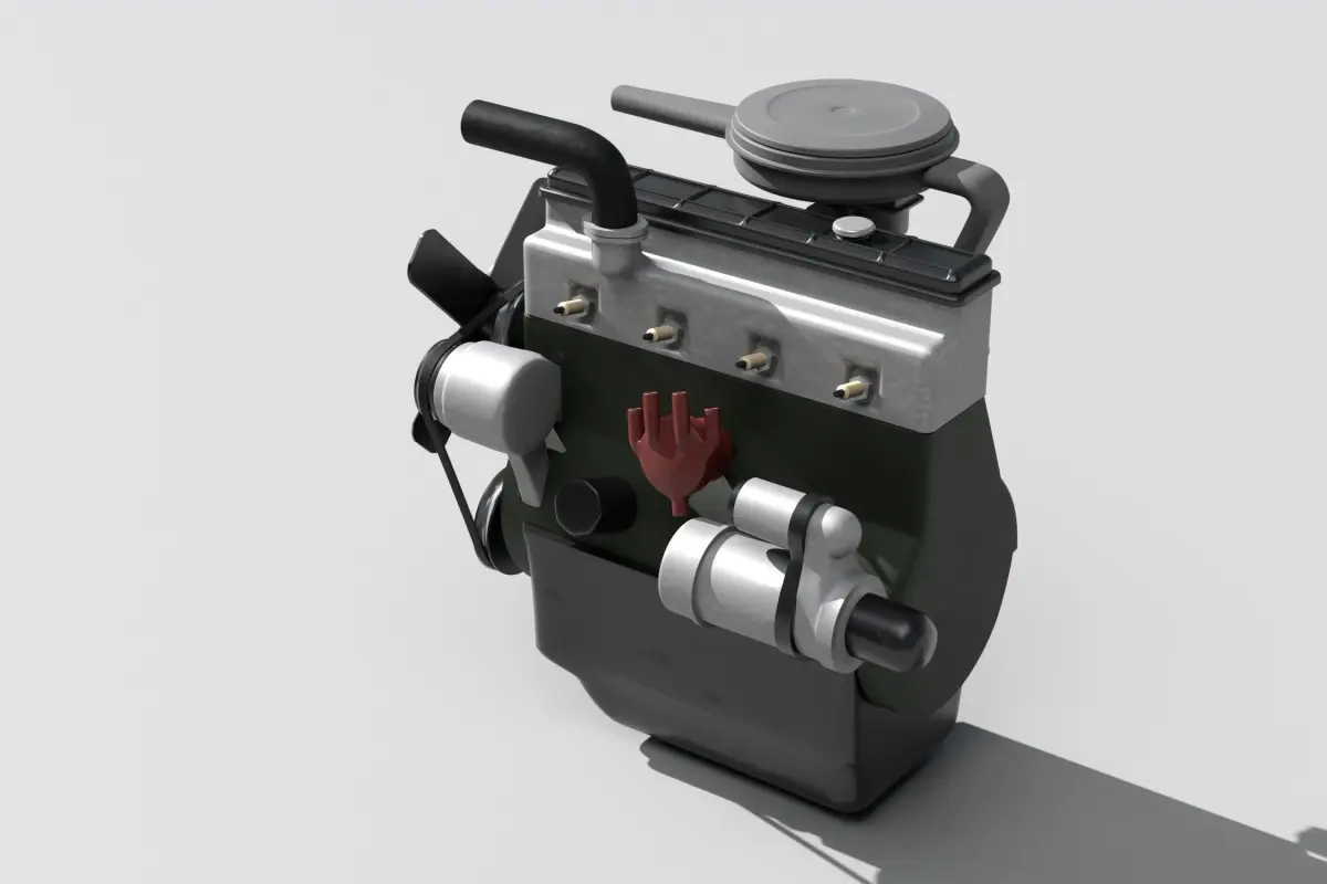 A straight-four engine (also called an inline-four) is a four-cylinder piston engine where cylinders are arranged in a line along a common crankshaft. S-21 model mount in old polish car Zuk, Nysa, Tarpan and Warszawa. Carburetor, Starter, water pomp, Air and oil filter, manifold and other parts.
