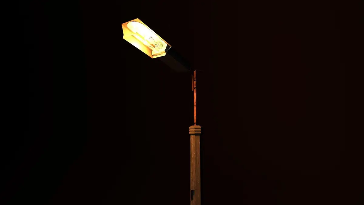 street lamppost with one light. concrete base with metal construction. The supporting elements are metal. Has 1 but very powerful paw. Great for decorating old streets and streets of Soviet countries.