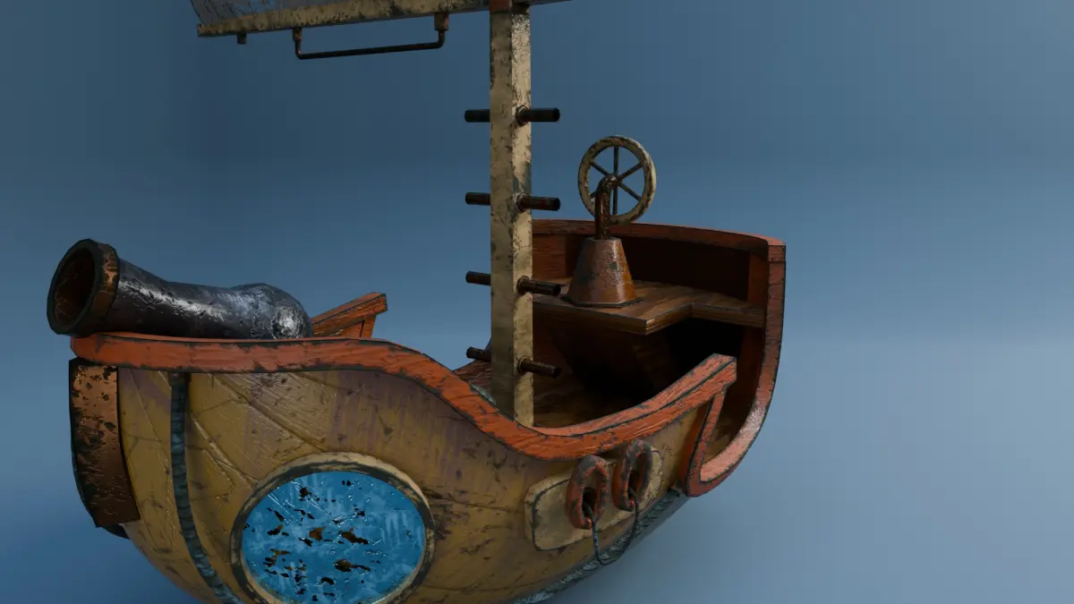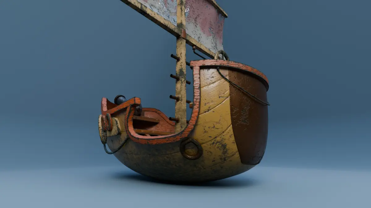 This is a single material (2K/4K Resolution) Model for an abandoned stylized boat. Can be optimized more for game use.some parts are subdivided but you can simply reduce the polygon count by disabling the subdivision modifier in the blender file. Fits for cartoon scenes as an abndoned boat after a tradigic war.