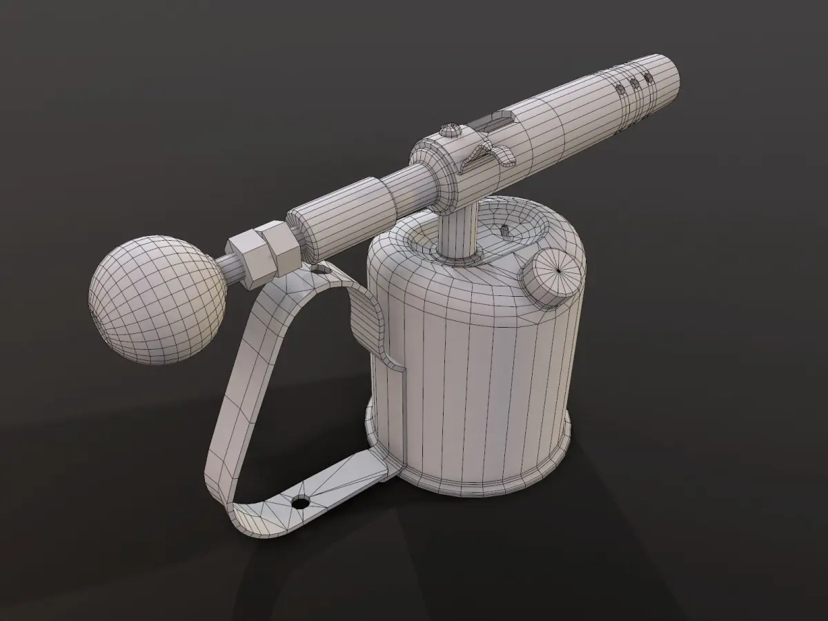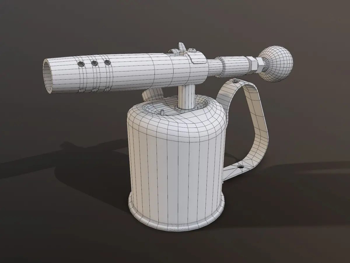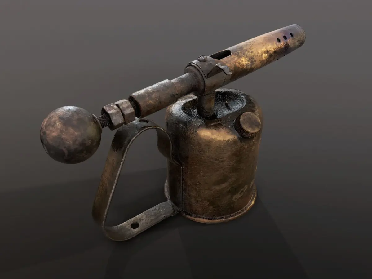 Game ready old brass blowlamp designed on a real sample for PBR engine.Normal map was baked from a high poly model.Textures: 4k metal/rough, spec/gloss Polygons: 3310 Triangles: 6179 Vertices: 3155