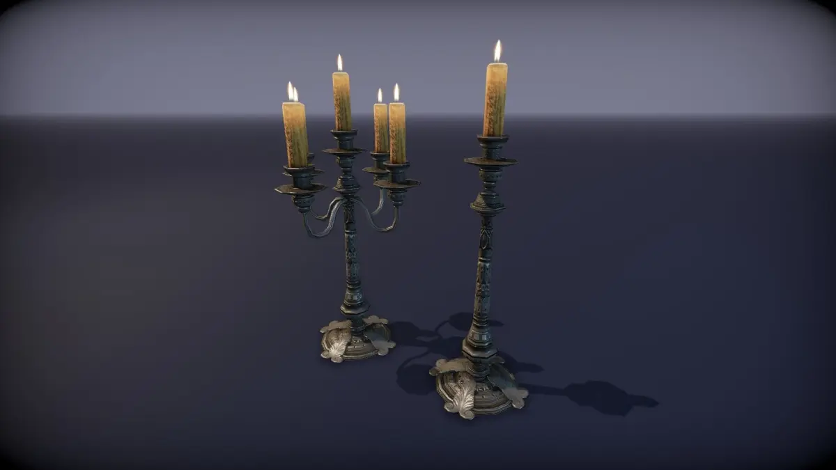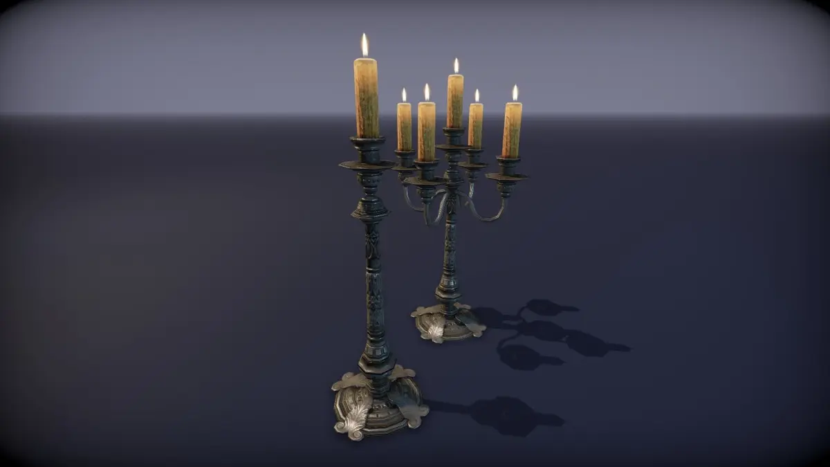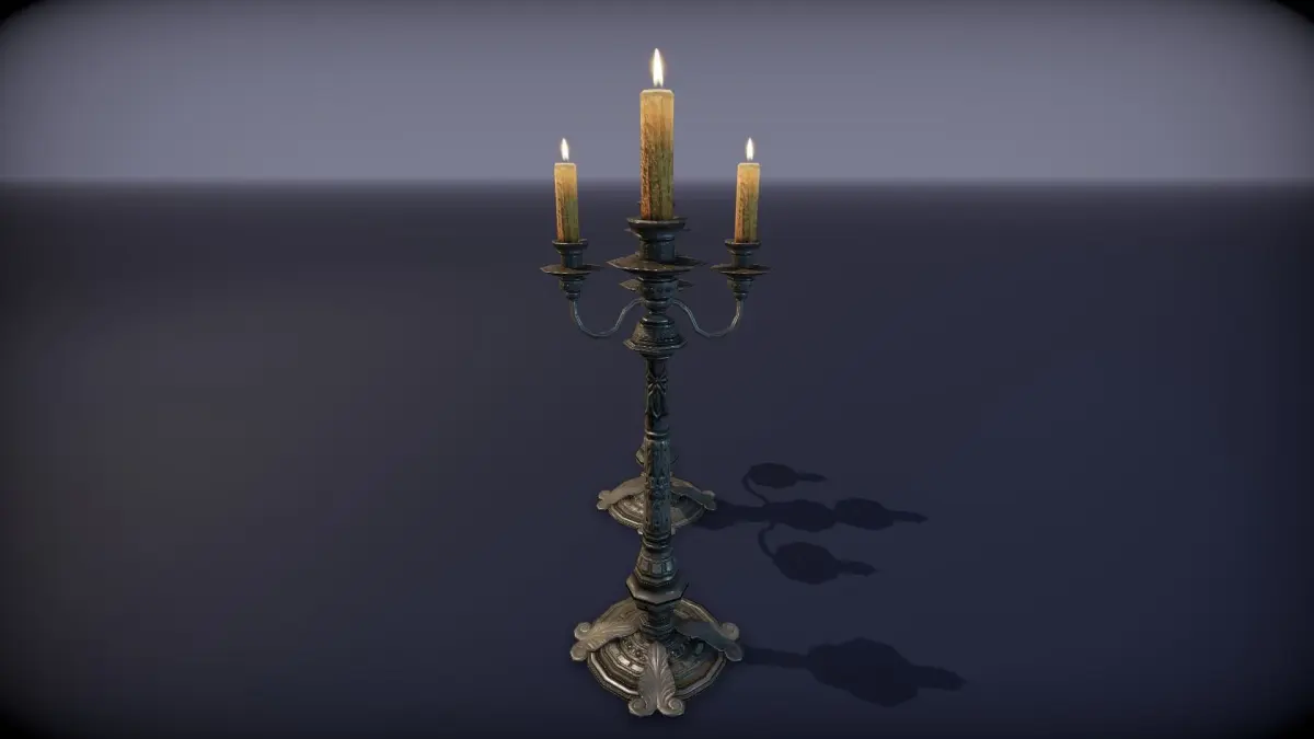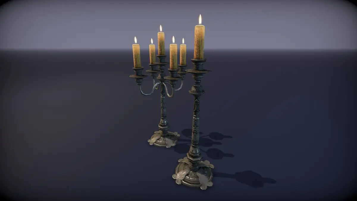 Low-poly 3d model of a medieval table candle. On preview is a render of Unity3D engine’s viewport. The package contain unity-materials. This model with 1 material applied - silver.