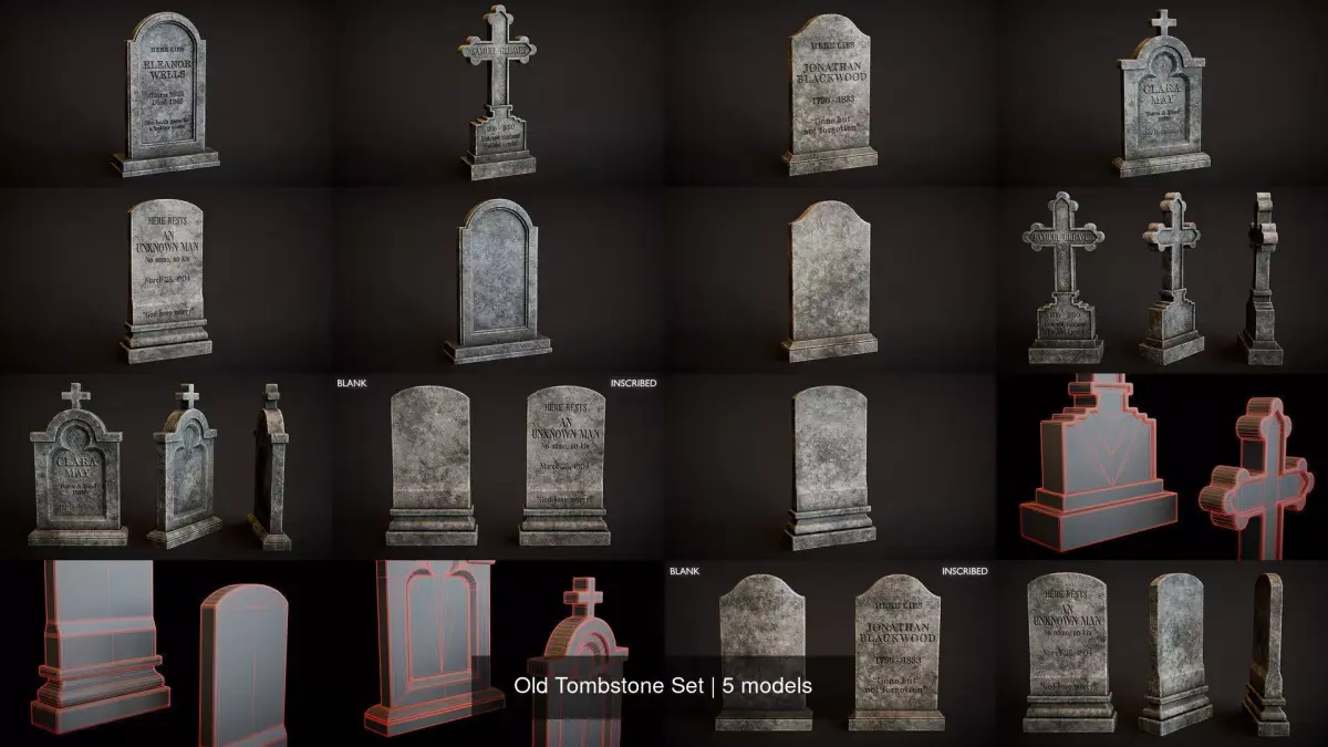 This Old Tombstone Set is created with Blender and textured in Substance Painter. Perfect for use in games, cinematic scenes, or visual storytelling projects where variation and storytelling details matter.