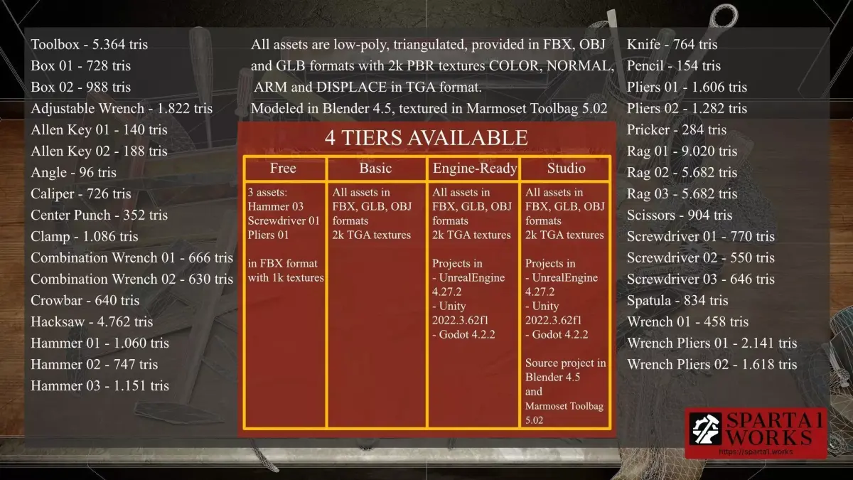 More versions, with Godot, Unity and UE game engines projects or Blender and Marmoset sources can be bought on https://sparta1.works
