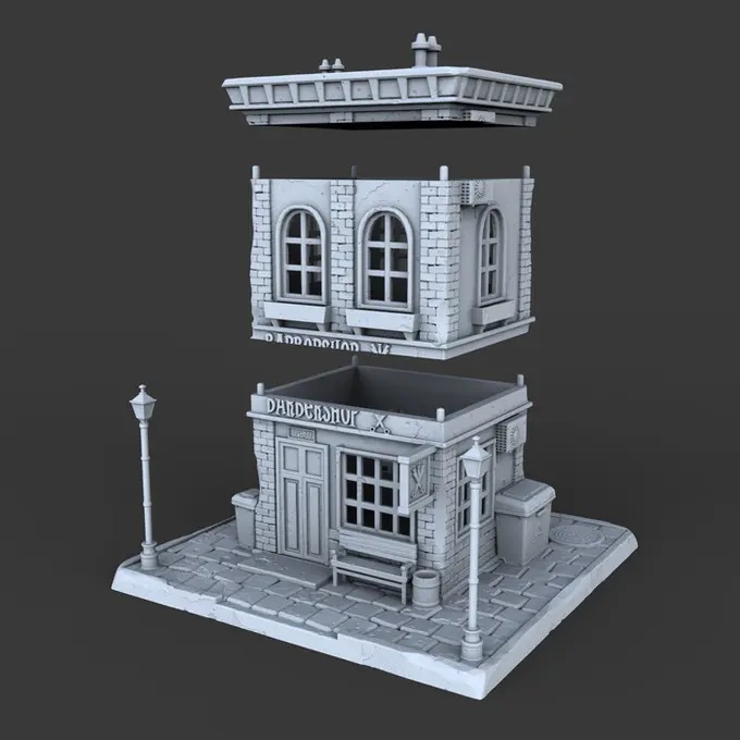 Small Town for 3D printing for desktop and RPG games. STL files(28mm).All files are checked and ready to be printed on the FDM printer. the size is adapted to the scale of 28mm.For slicing files, I recommend you to use Ultimaker Cura latest version