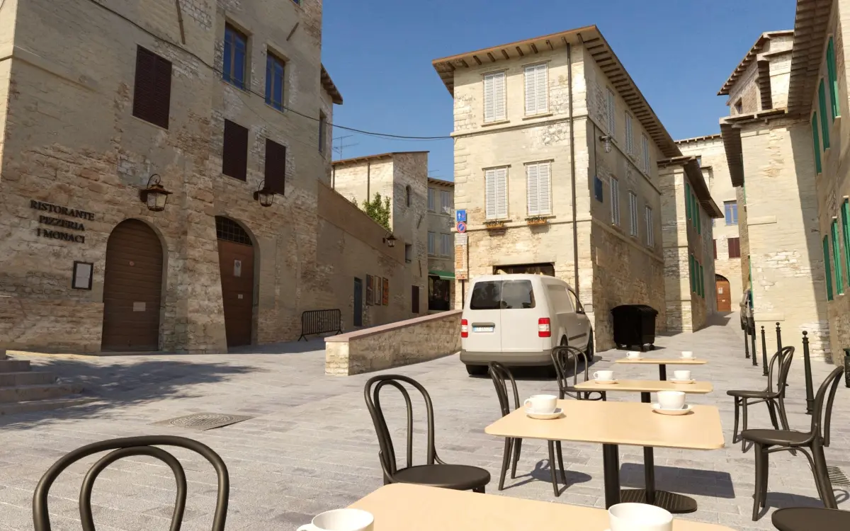 Just randomly searched on the Internet and I found a very beautiful medieval town of Assisi in Italy. I created are based on the town I found on Google map.