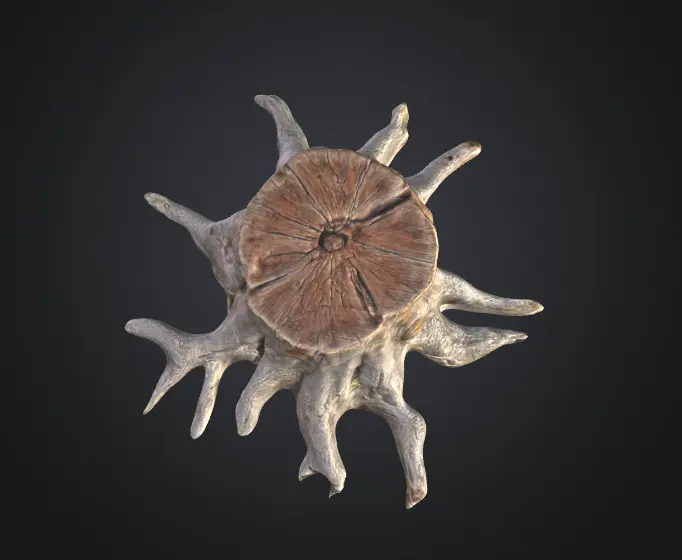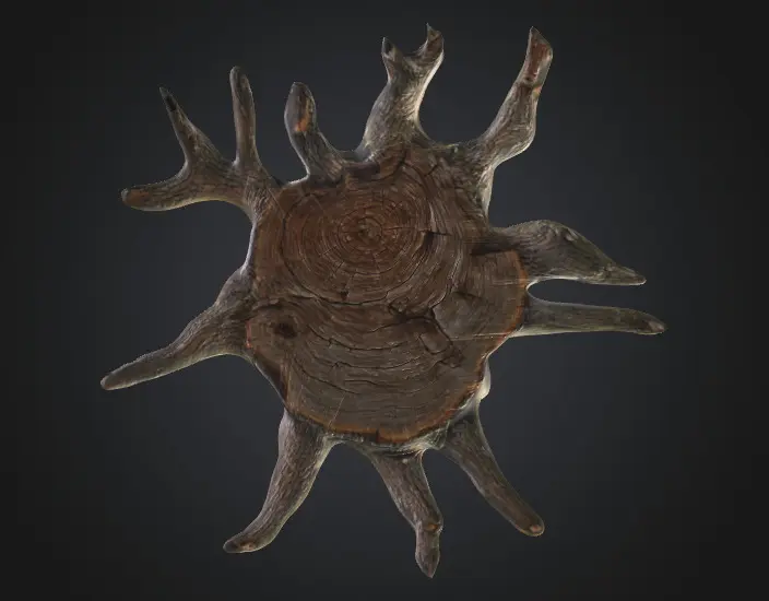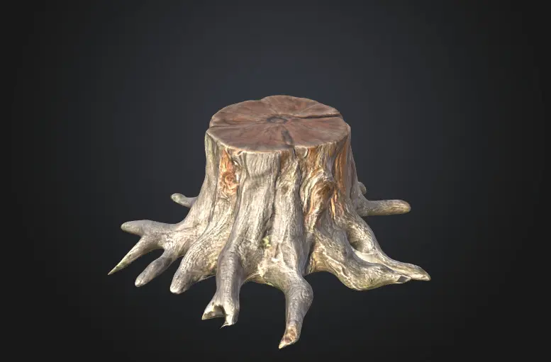 This 3D model features an old tree stump with a rugged, bark-covered surface, weathered by time. Its multiple irregularly shaped limbs extend both vertically and horizontally, creating a natural and organic form. The detailed cracks, gnarled roots, and rough texture add depth and realism to the design. Perfect for nature scenes, fantasy environments, or game assets, this model brings an authentic and immersive touch. With its intricate details and lifelike appearance, it serves as an excellent addition to realistic or stylized landscapes, enhancing visual storytelling with its aged and weathered charm.