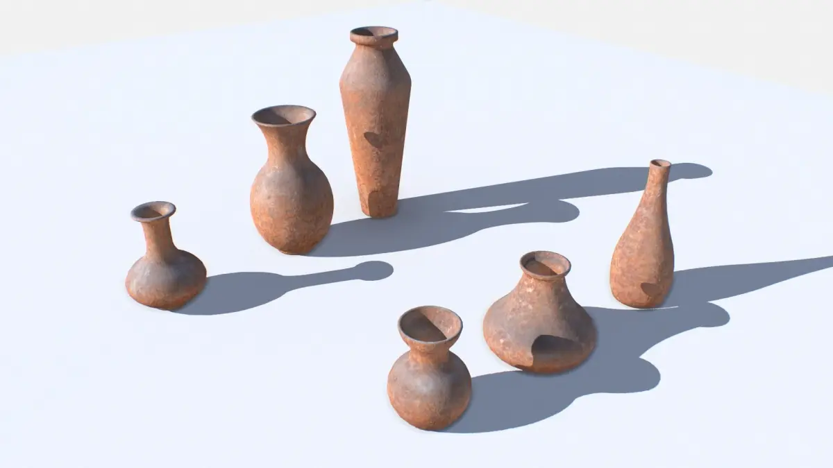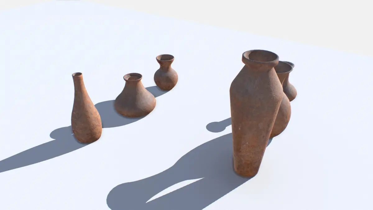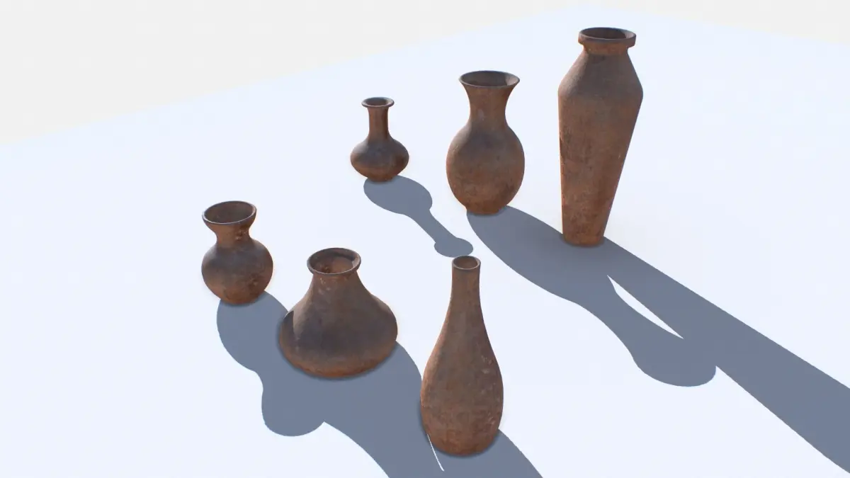 6 old vases. Real scale. 1 texture set.