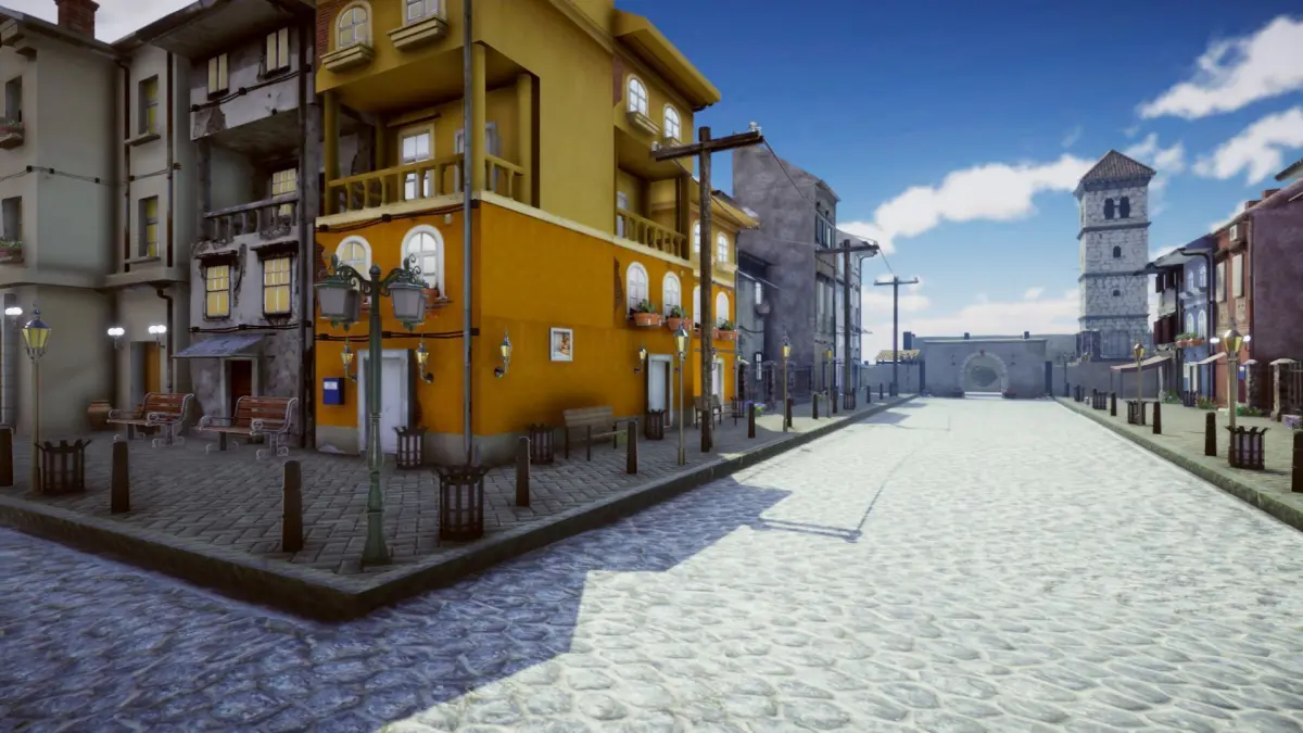 This Unity pack now includes 67 models in total, 17 buildings (exterior only) and 50 additional props, like lamps (5), flowers (15), vases (2), awnings (7), benches (4), road blocks and others.
