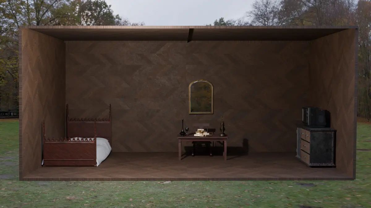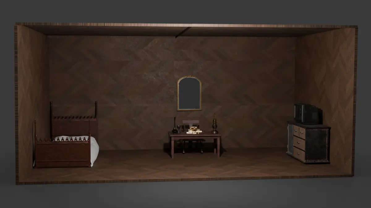 - Full vintage room environment in one cohesive scene