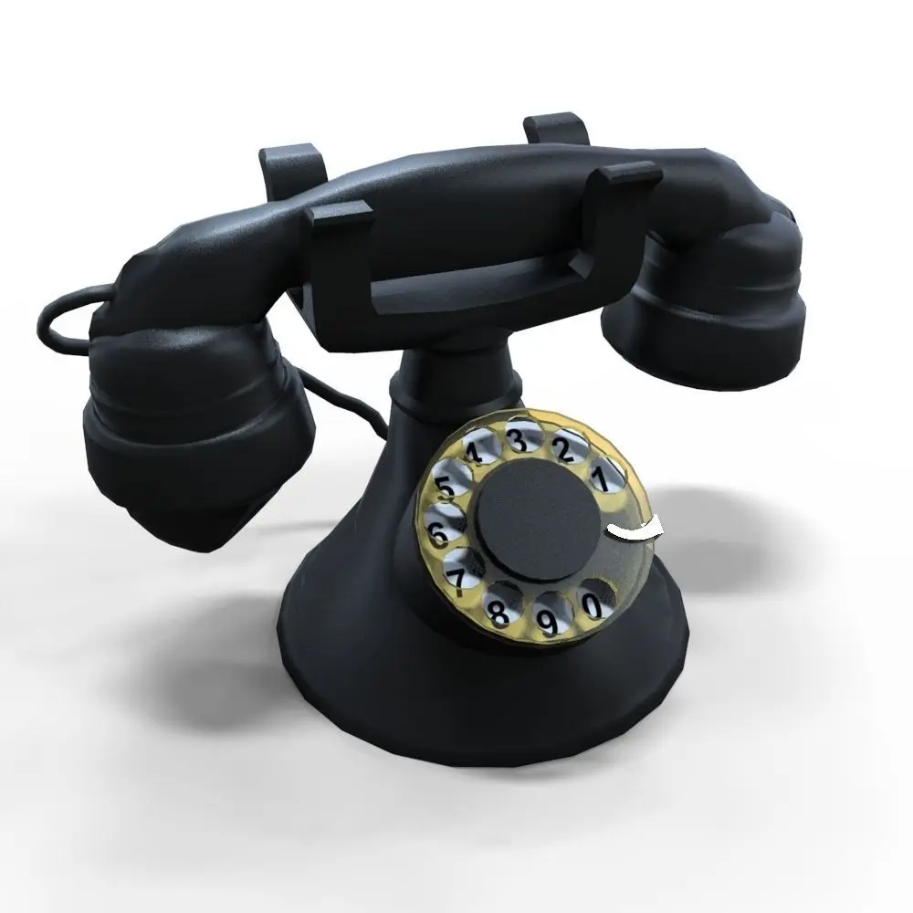 Model: Rotary Phone Media Type: 3D Model Geometry: Quads/Tris Polygon Count: 2937Vertice Count: 2773Textures: Yes Materials: Yes Rigged: No Animated: No UV Mapped: Yes Unwrapped UV's: Yes Non Overlapping