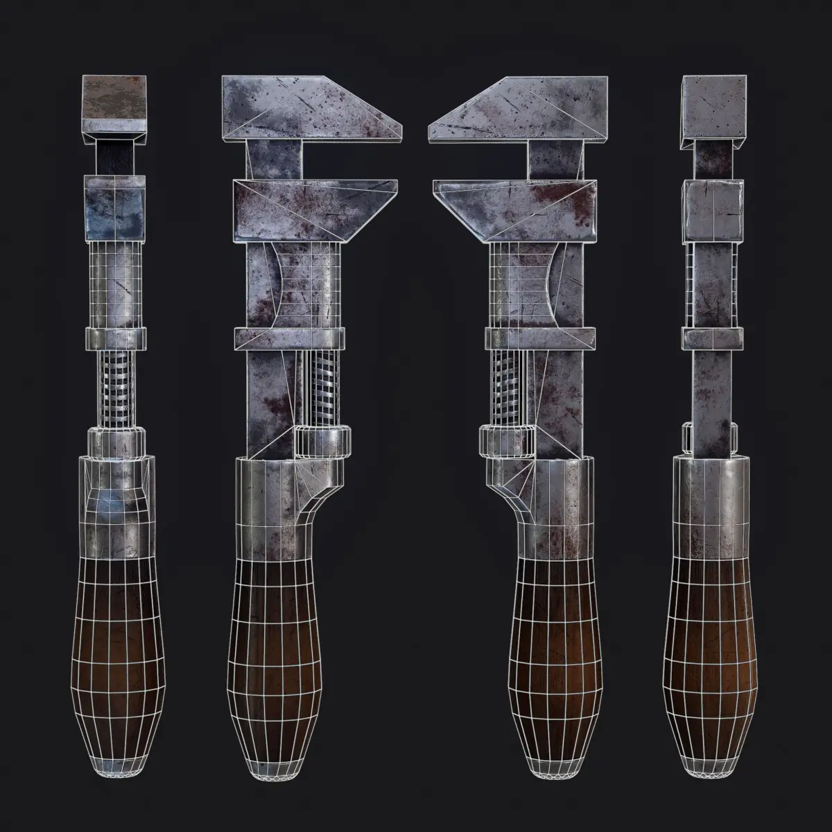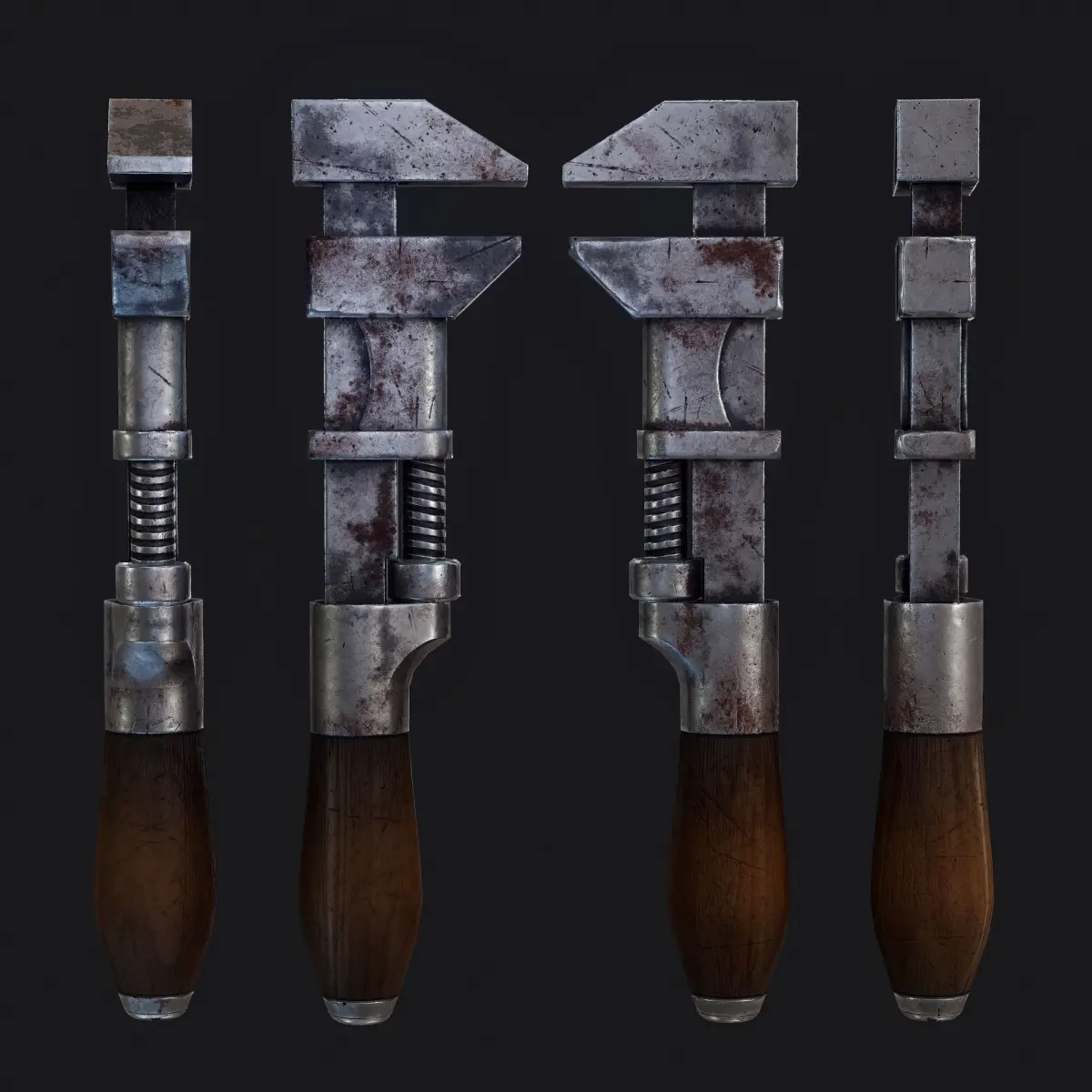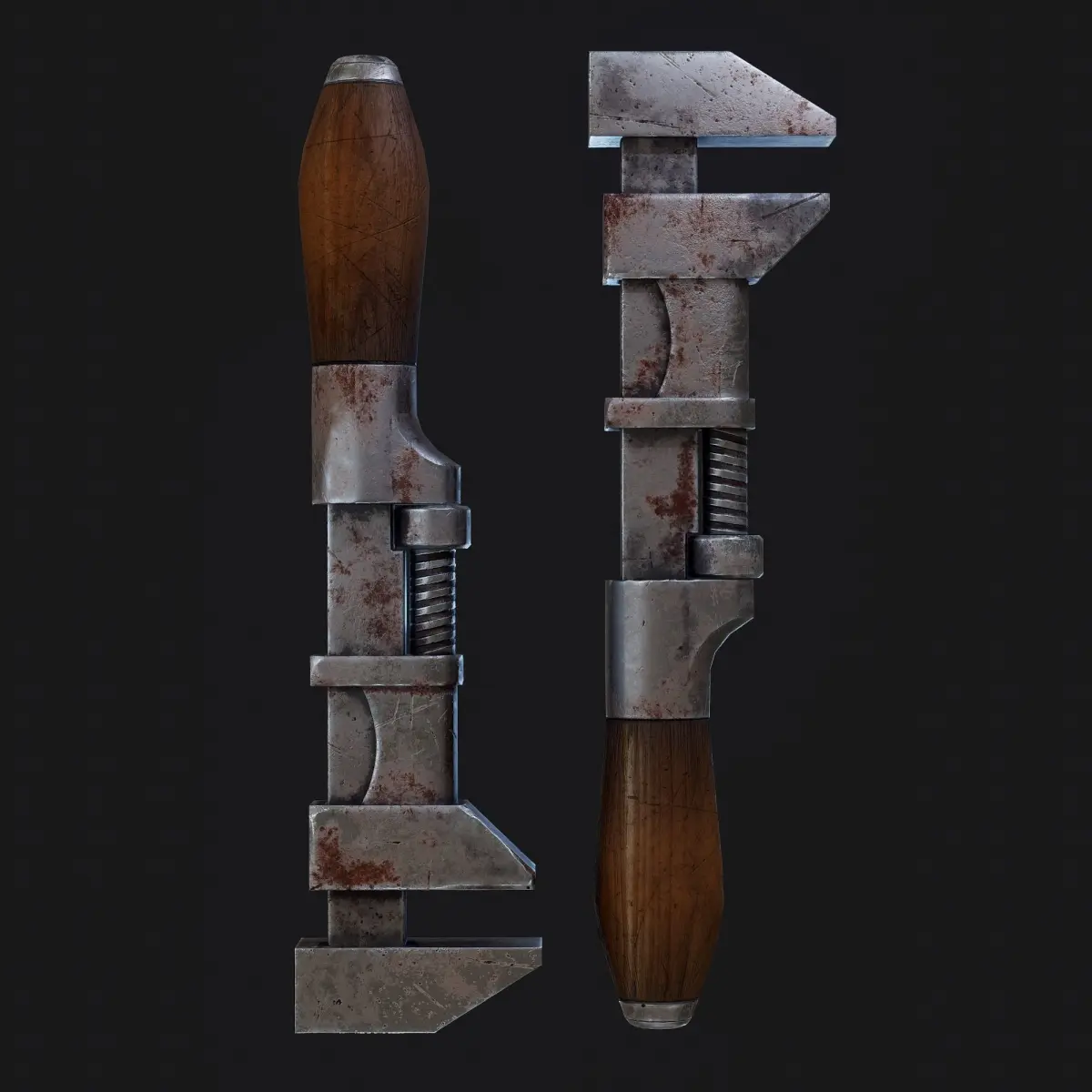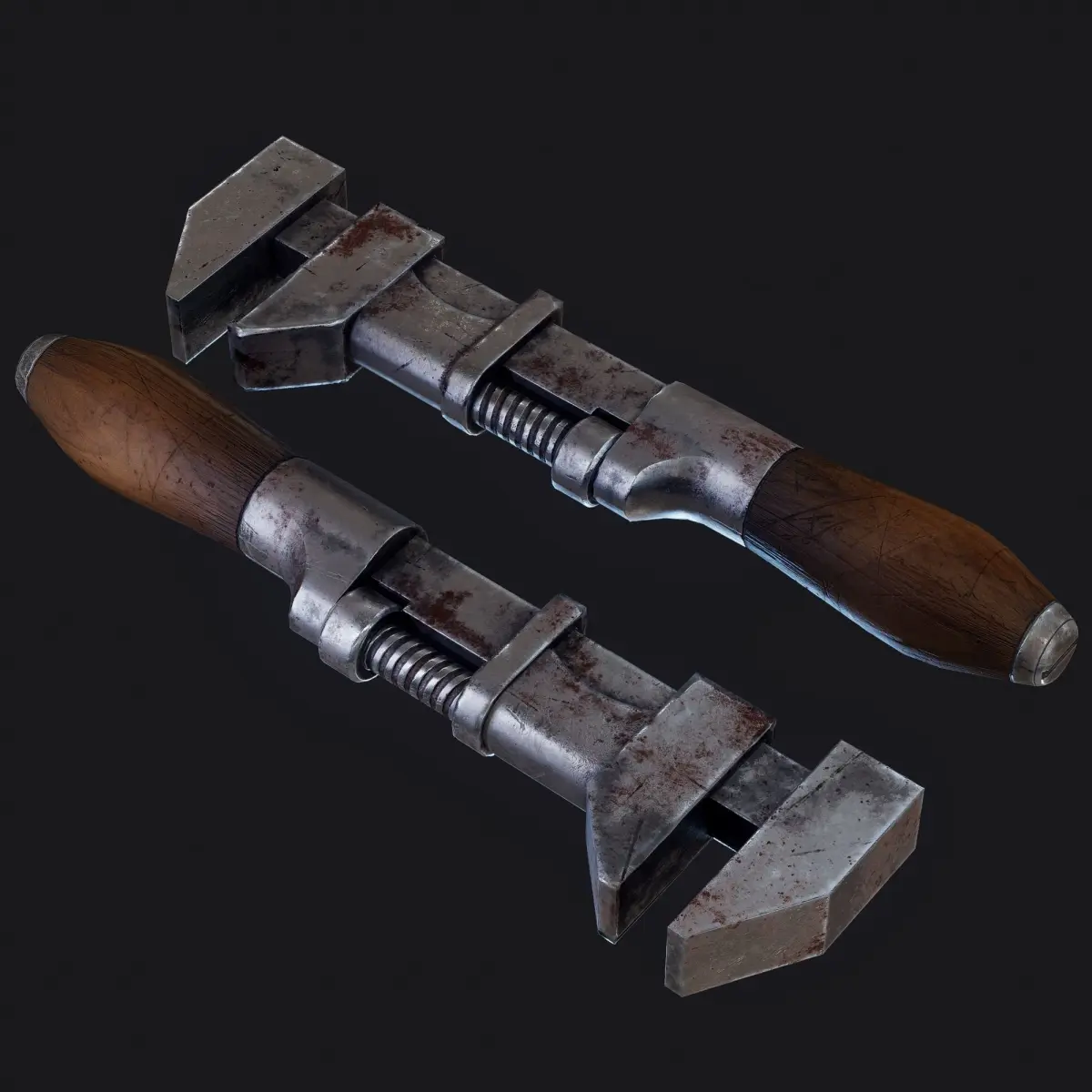 Lowpoly Old vintage pipe wrench game-ready model with PBR-textures
