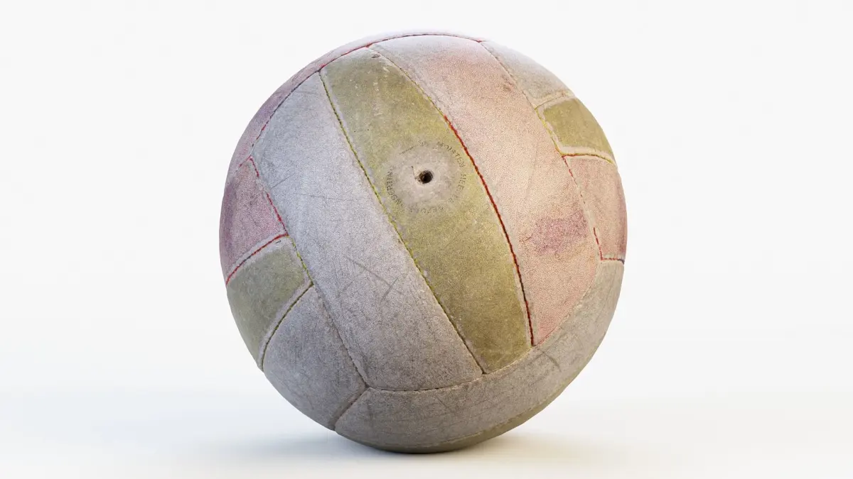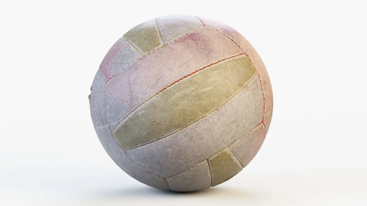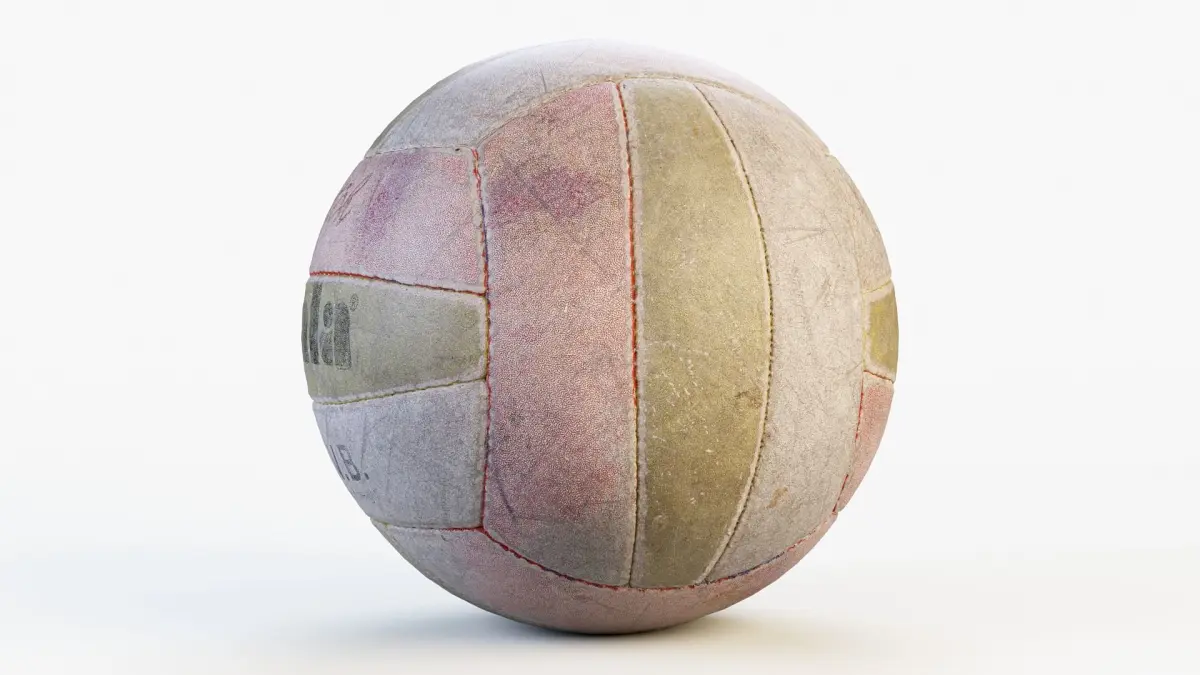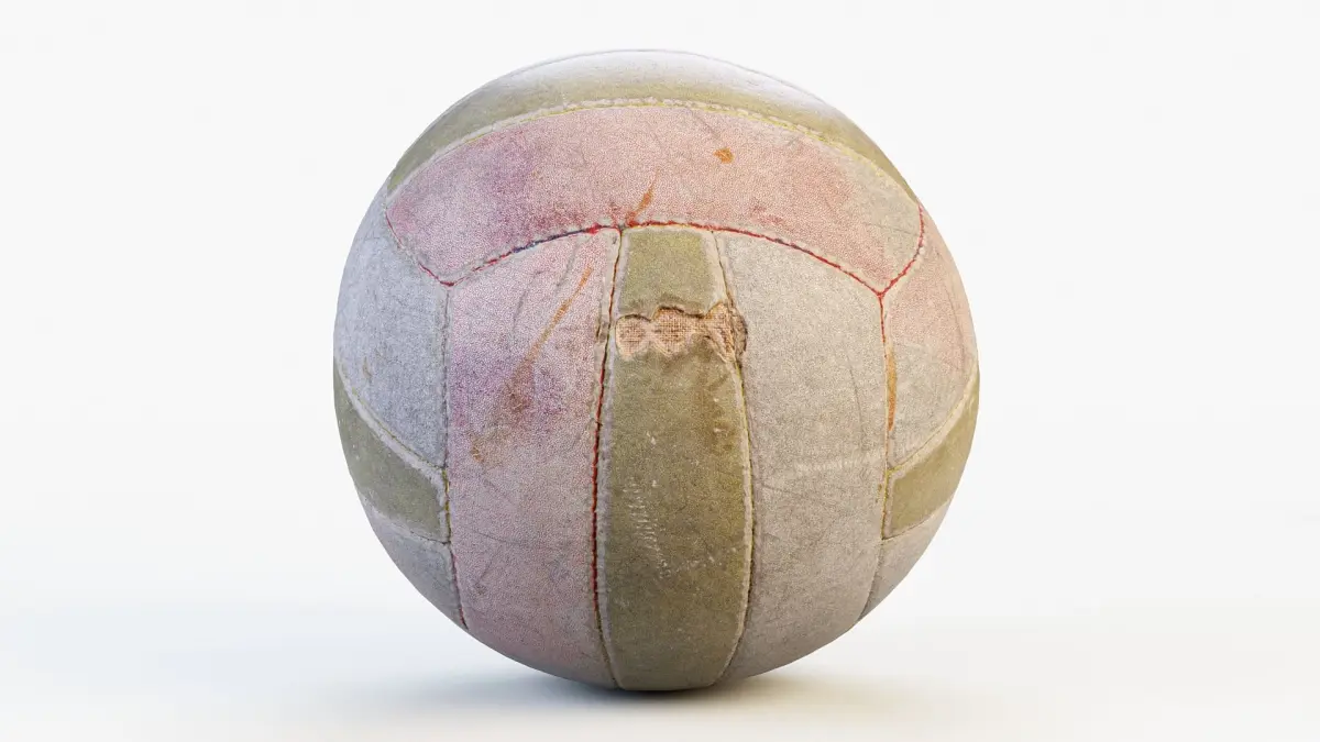 Digital 3D model of old heavily weathered volley ball. The model was created by scanning real object, then carefully cleaning scan data and authoring PBR materials.