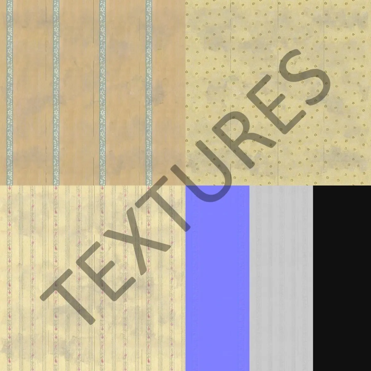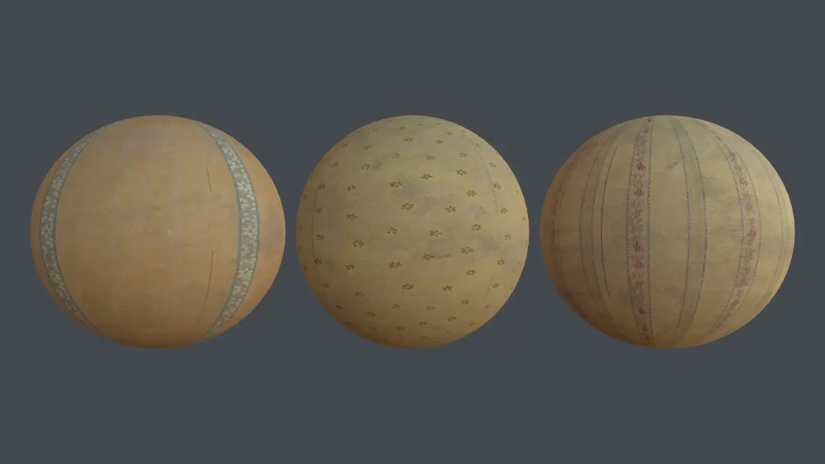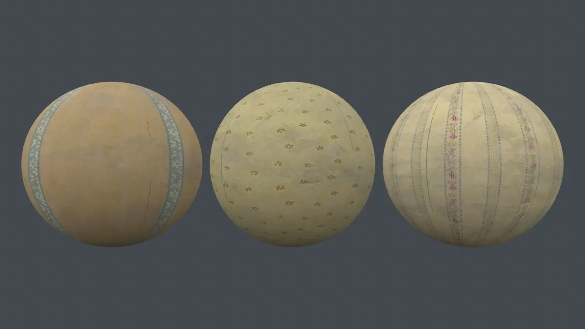 Old Wallpapers seamless PBR texures packThis pack cosist of 3 types of an old wallpapersThis is textures only, no models insideMaps included: