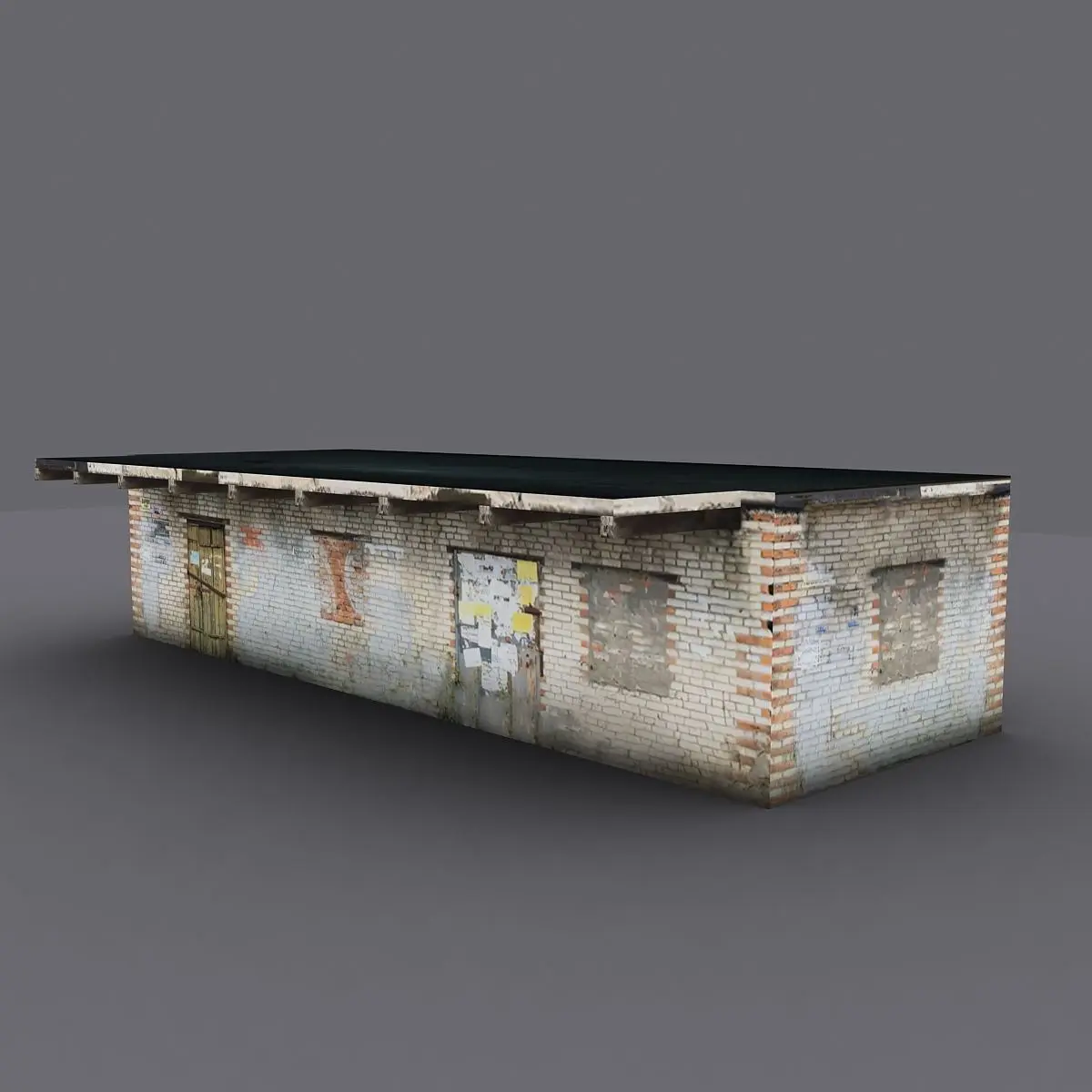Low-poly old Russian warehouse 3d model.The model has a texture size of 2048 by 1024.