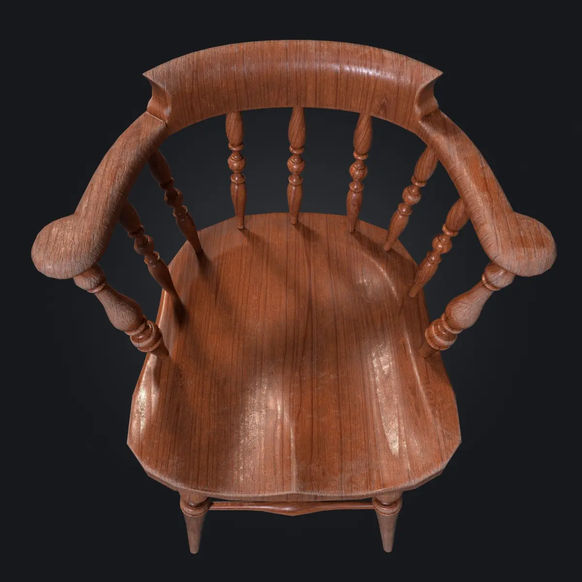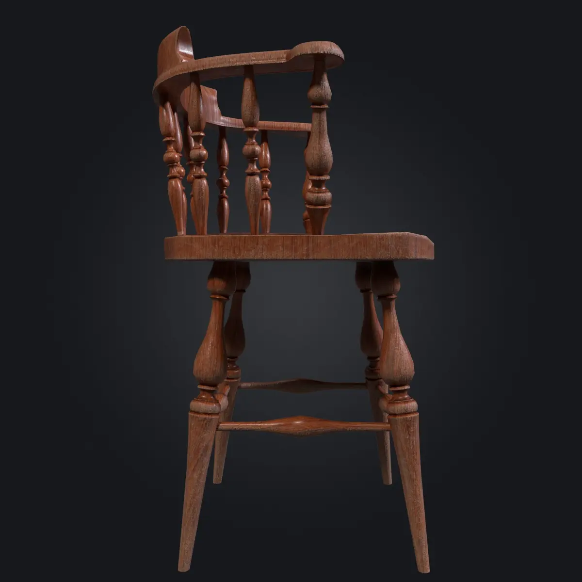 Here is a game ready vintage windsor-styled wooden chair with the utmost care to obtain a standard that is both visually exquisite and performance friendly for real-time applications.