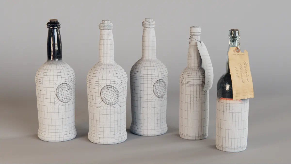 these 5 wine bottles have been modeled after real wine bottles from the early 1800's. each of them comes with a photorealistic PBR material with baked 4K Textures.all textures are packed into the .blend formats and can be downloaded manually for use with the .obj and .fbx format.