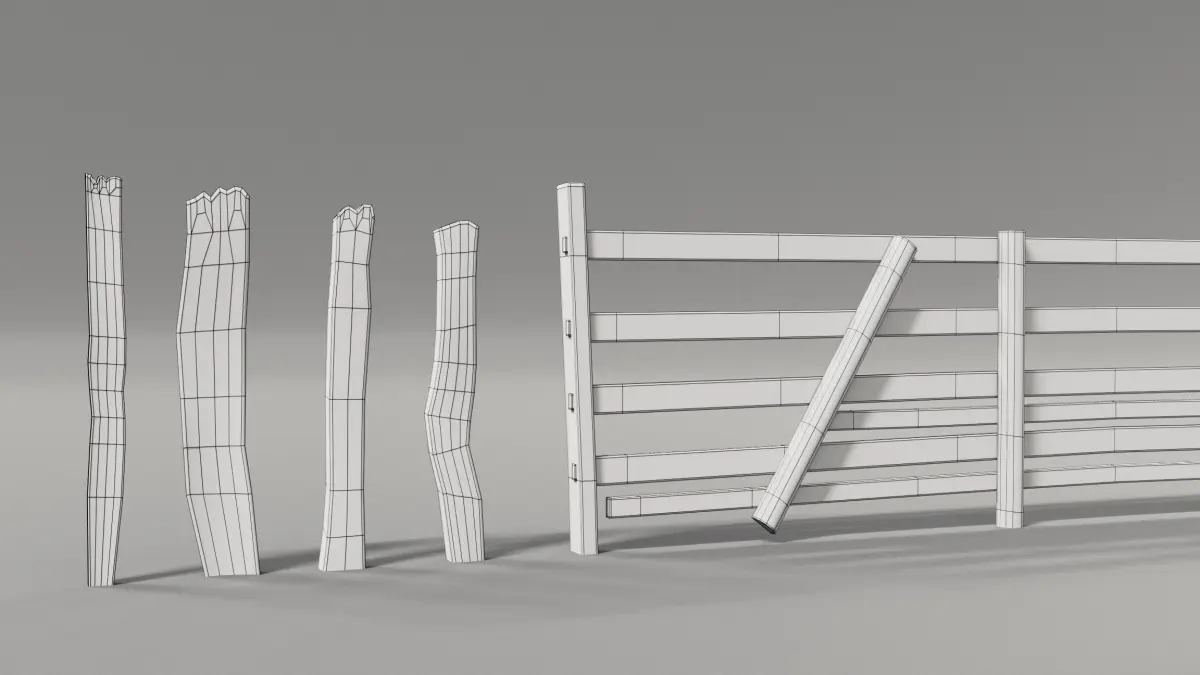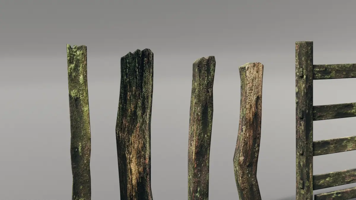 all models share a baked PBR material with textures from real wood fences. all textures are packed into the .blend files and can be downloaded manually for the.fbx and .obj formats.