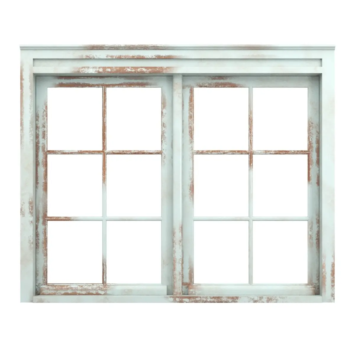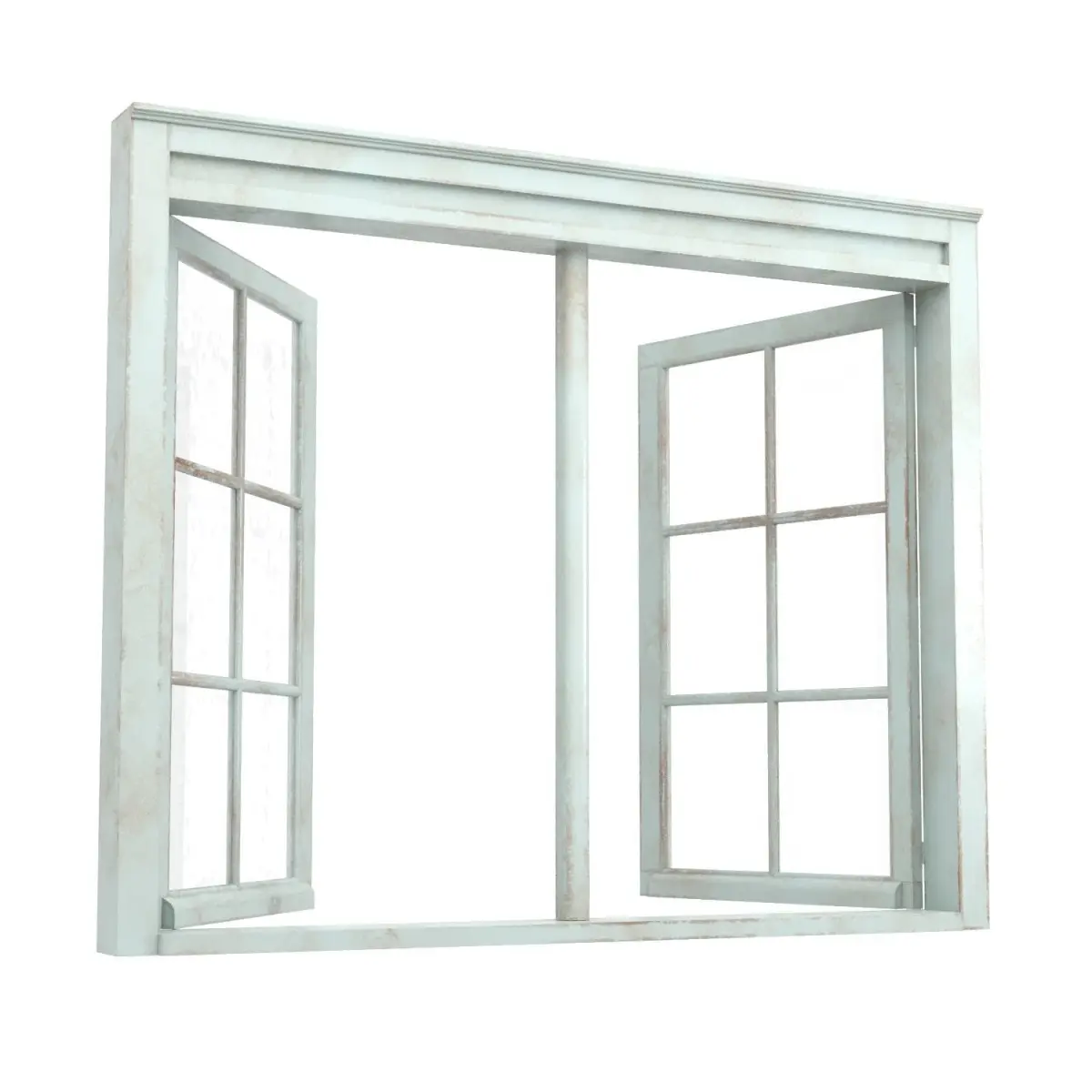 This 3D model of an antique wooden window, has fully parametric materials for customizable painting color and varying degrees of dirt and scratches.The model is meticulously grouped, allowing for easy manipulation of opening and closing the window.