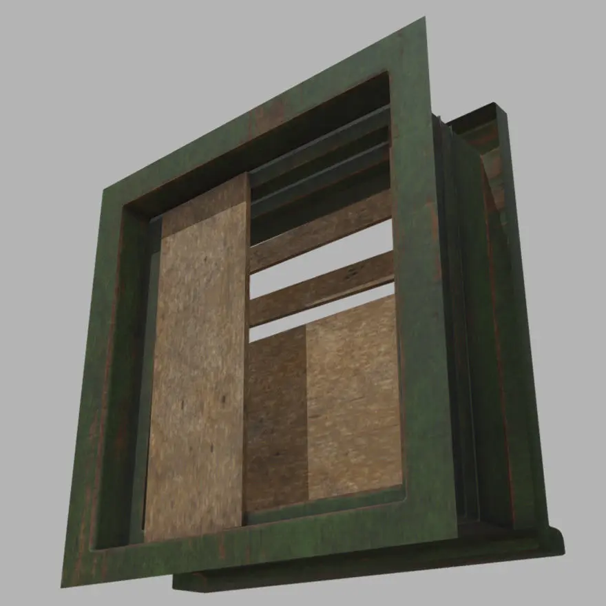 Old basement wood window.Real ratio and scaling.Low poly model for games, game asset.