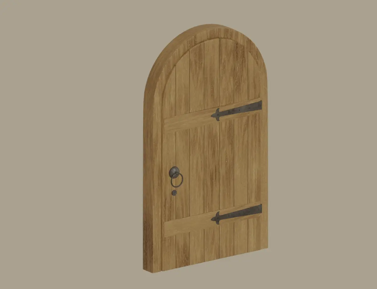 Materials: 2 - Old Wooden Arch Door, metal.