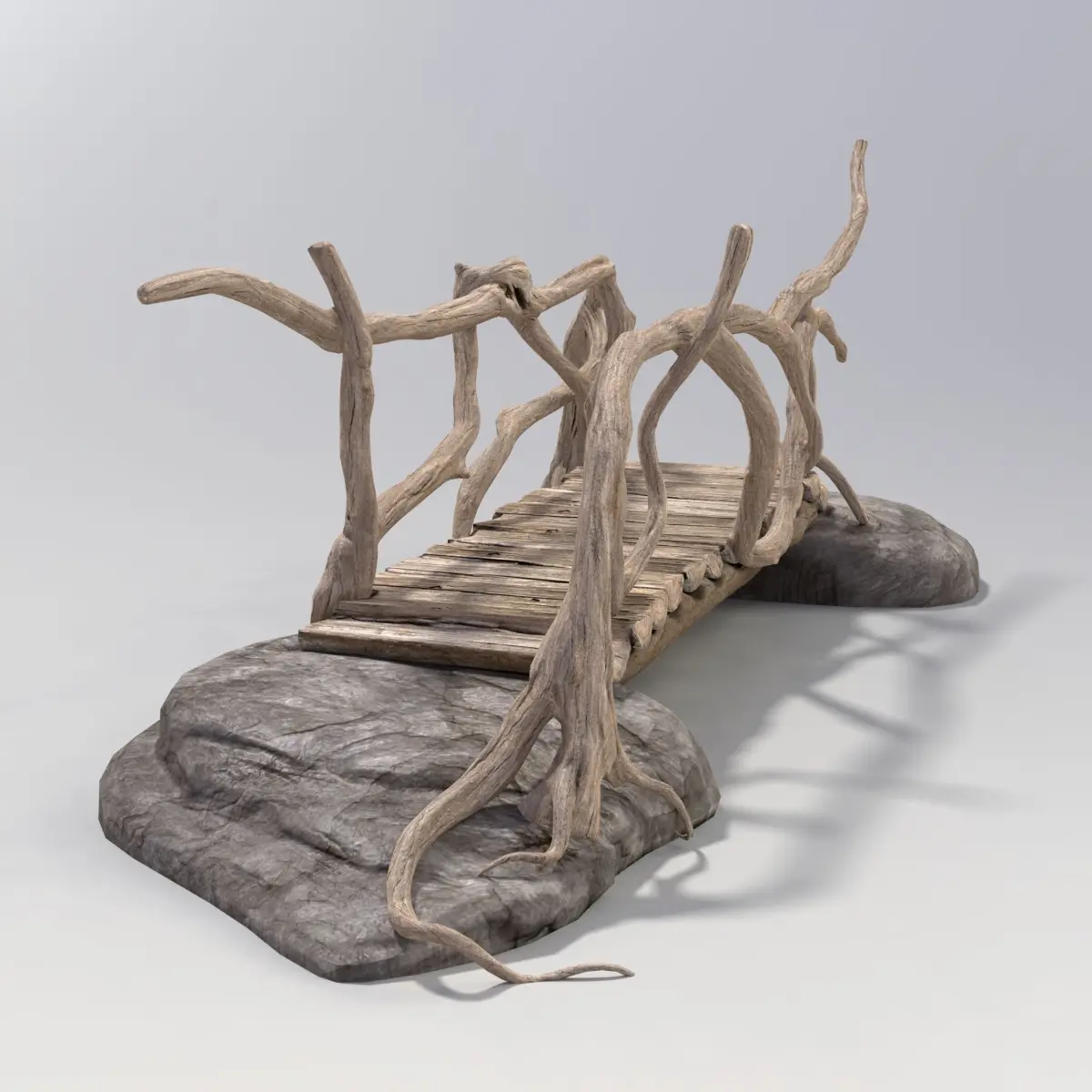 Fully detailed, textured model of the wooden bridge of logs. Detailed enough for close-up renders. Includes realistic texture maps: diffuse map, normal map, specular map(4096*4096). Originally modeled in Modo. Bake textures with high polygon model made in ZBrush. Final images rendered with Modo 801. -Clear topology. -Formats: ma, obj, lxo.