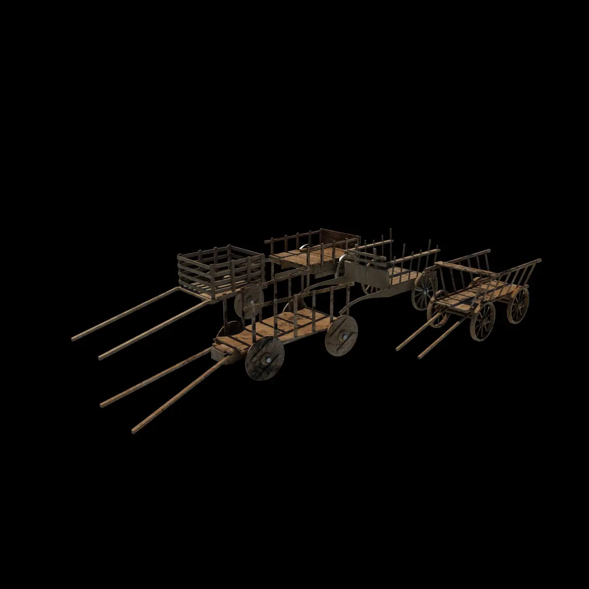 Old wooden carts.obj OBJ (.obj, .mtl) 2022