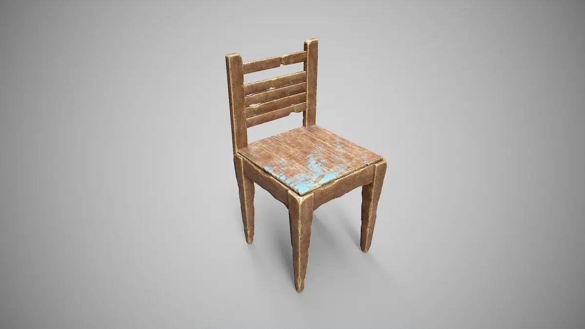 Old Wooden Chair-1 Low-poly 3D model
