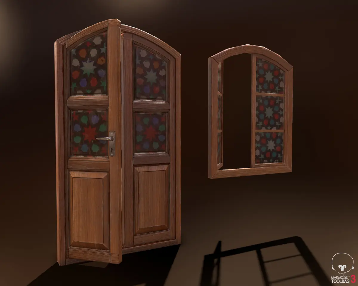 a set of middle eastern old wooden door and window low poly models in high quality and clean potology with PBR texture set is ready for for Projects. models are game ready and very low poly with high quality textures and with Unity , Unreal and PBR material format.ready to rigg in any gaming engines to open up from hinge.