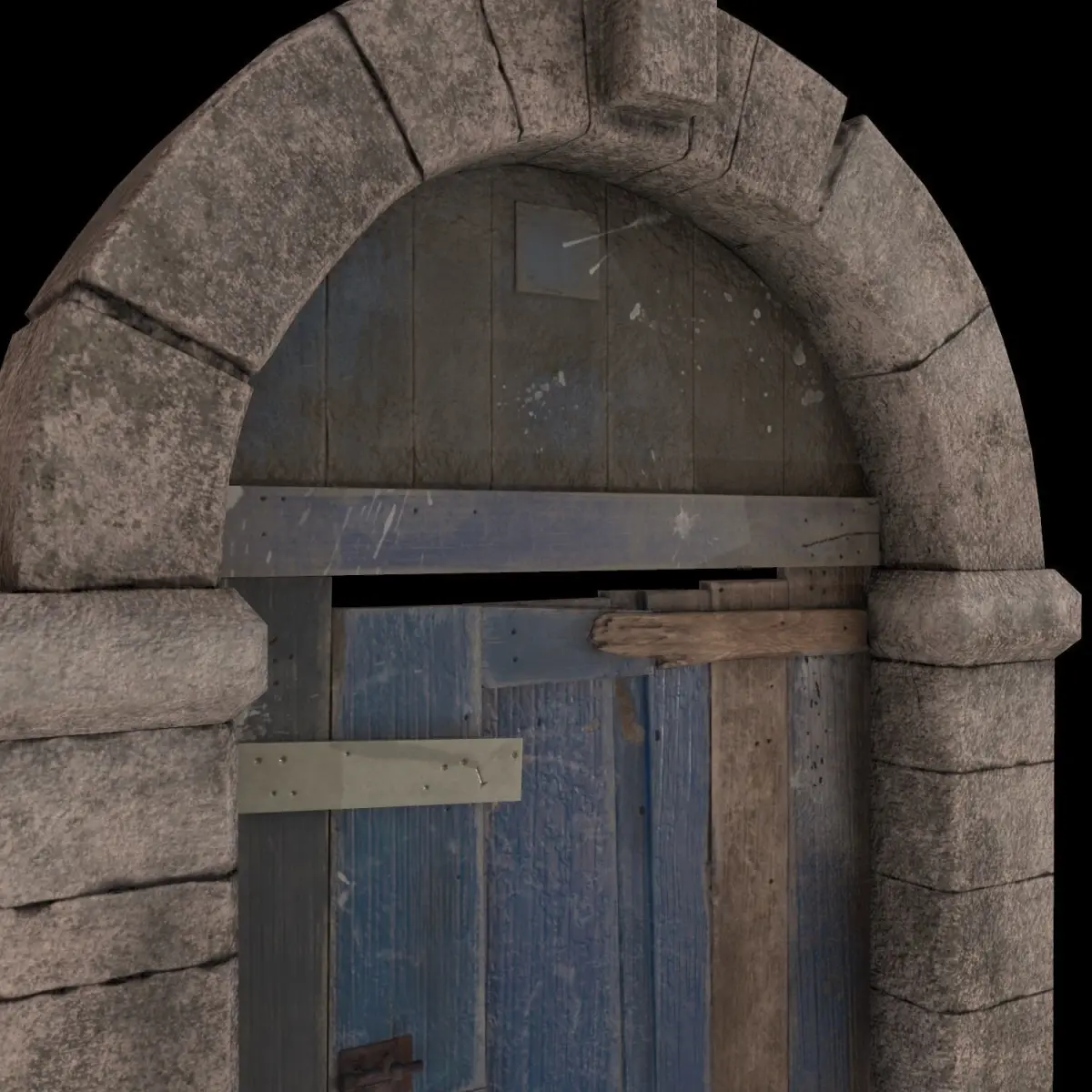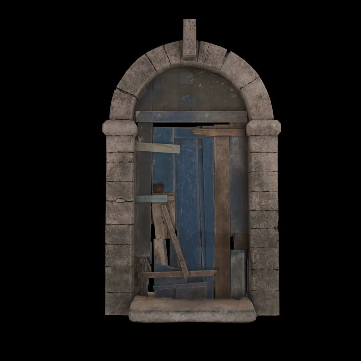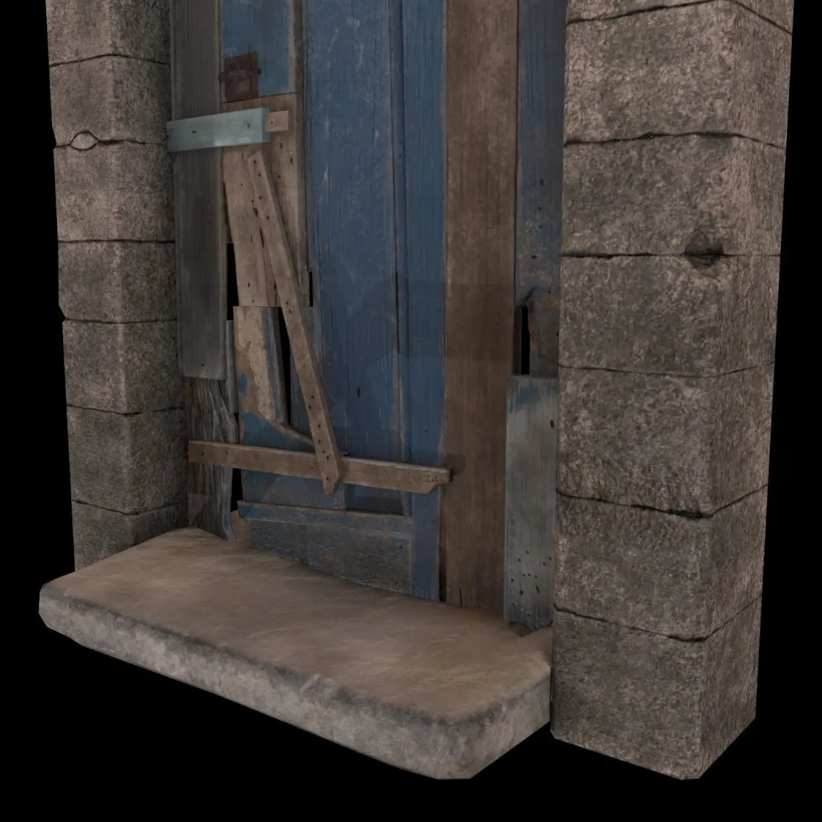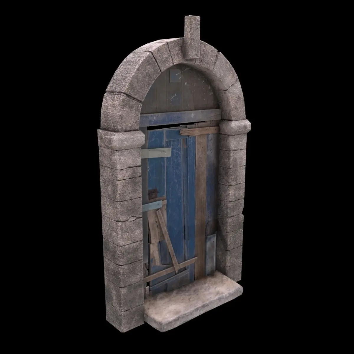 Old Wooden Door, Unwrapped by hand, non-overlapping, Ready for PBR game. Included textures: BaseColor, Ambient Occlusion, Roughness, Metalness, Normal map.