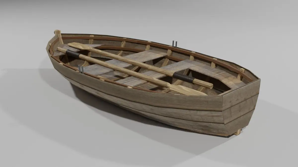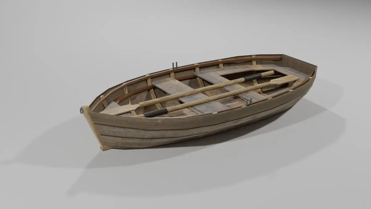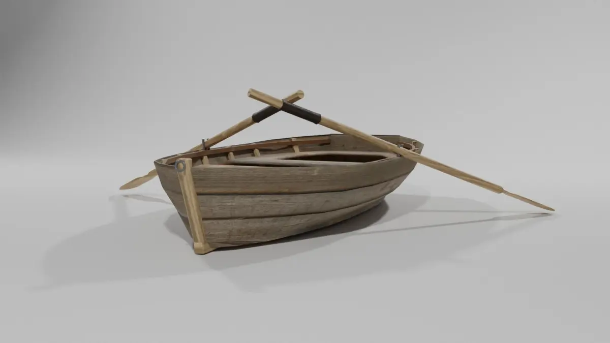 This is a model of an old wooden boat with shovels. the package includes unwrapped UDIMs with PBR textures. the model was originally made with Blender but you can use other file formats included in the package.
