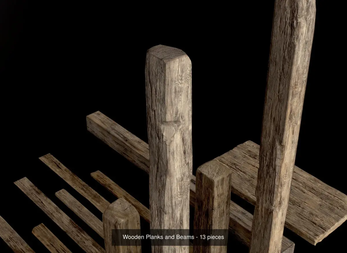 This is high quality low-poly game asset. These old planks and balks can be used for modern, medieval or any other game scene. 4K textures/3 materials for all 30 items.