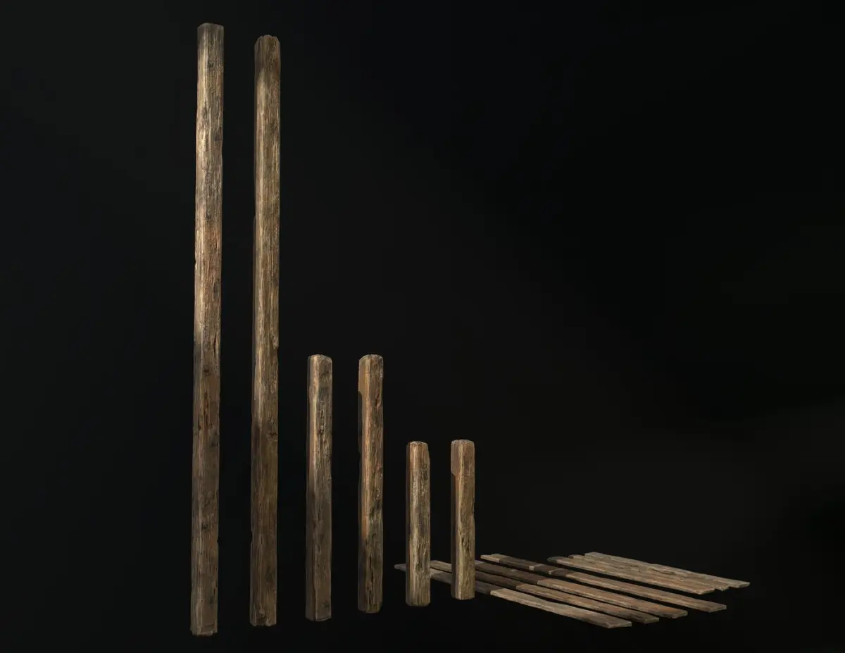 This is high quality low-poly game asset for first-person games or third view. These old planks and balks can be used for modern, medieval or any other game scene. 4K and 2K textures/3 materials for all 26 pieces. Texel density is from 9 to 10.7 for 2? UV-maps and from 18.1 to 21.4 for 4K UV-maps.