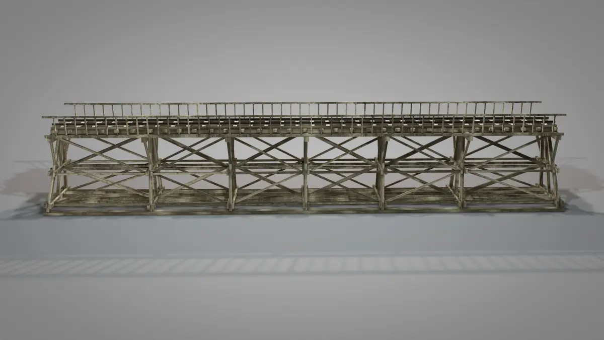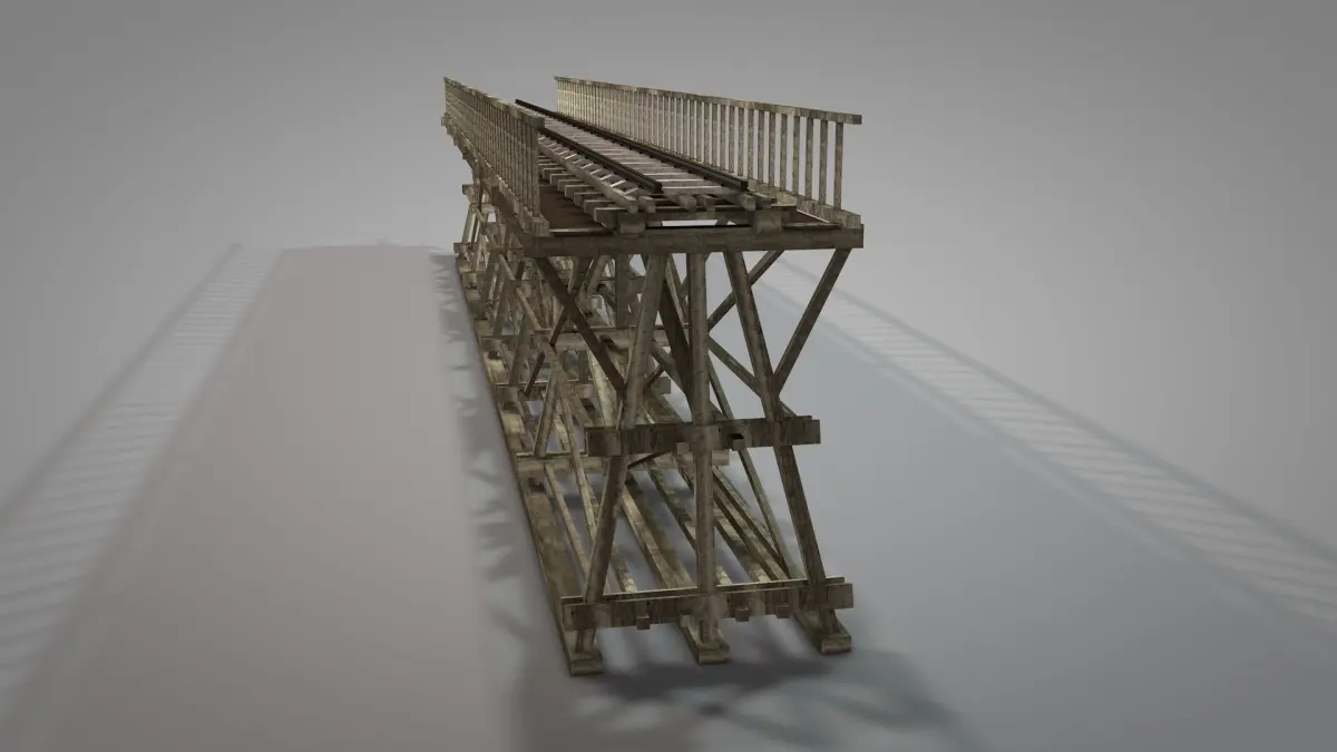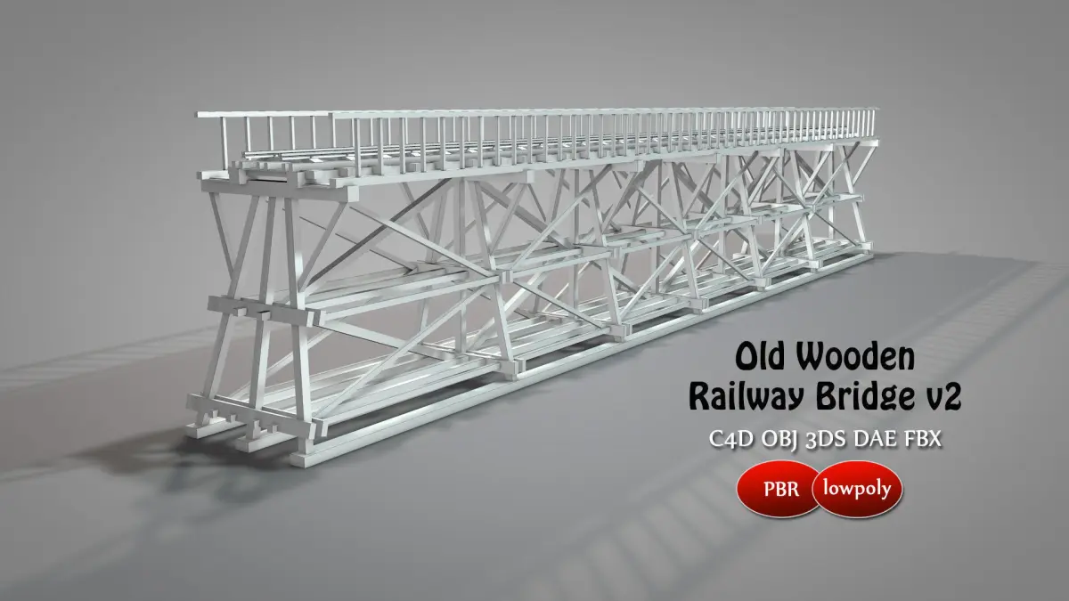 This is a nice looking and detailed wooden railway bridge model (like first version) for western fans and gamers. This model is suitable for the game engines because of the low polygon structure.