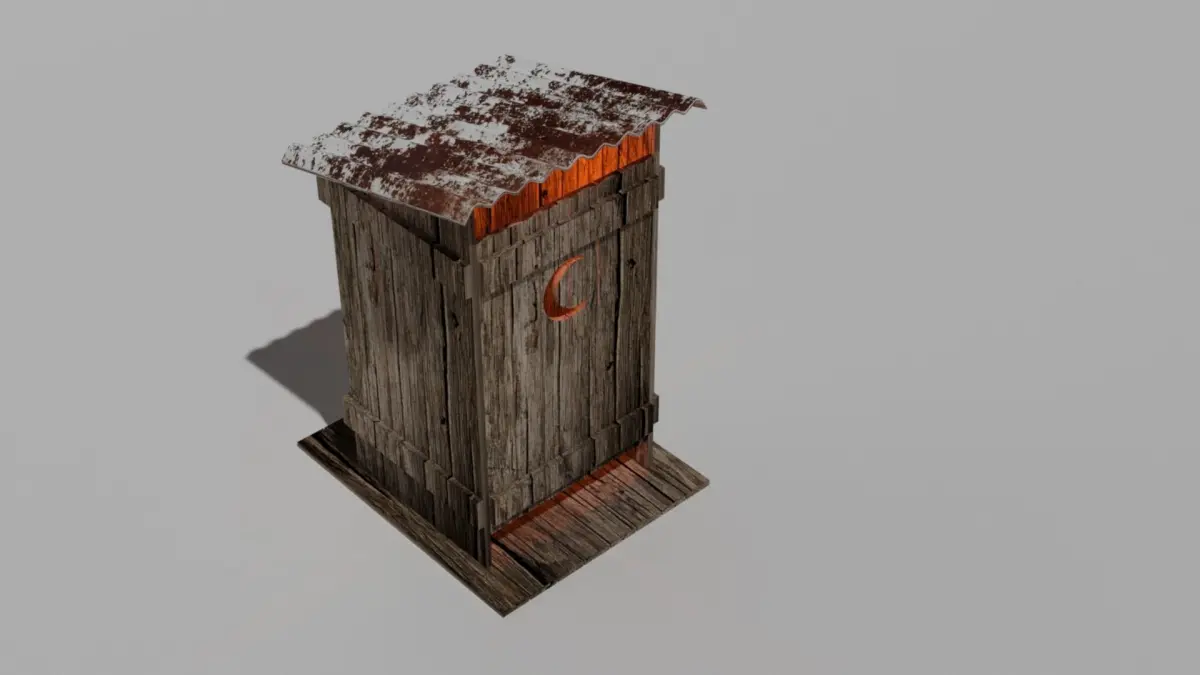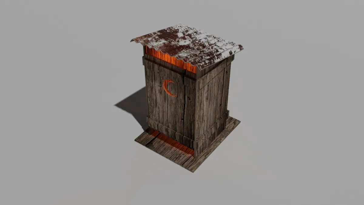 The outside pictures of the outhouse in the woods at night is for demonstration purposes only to show the models potential uses.