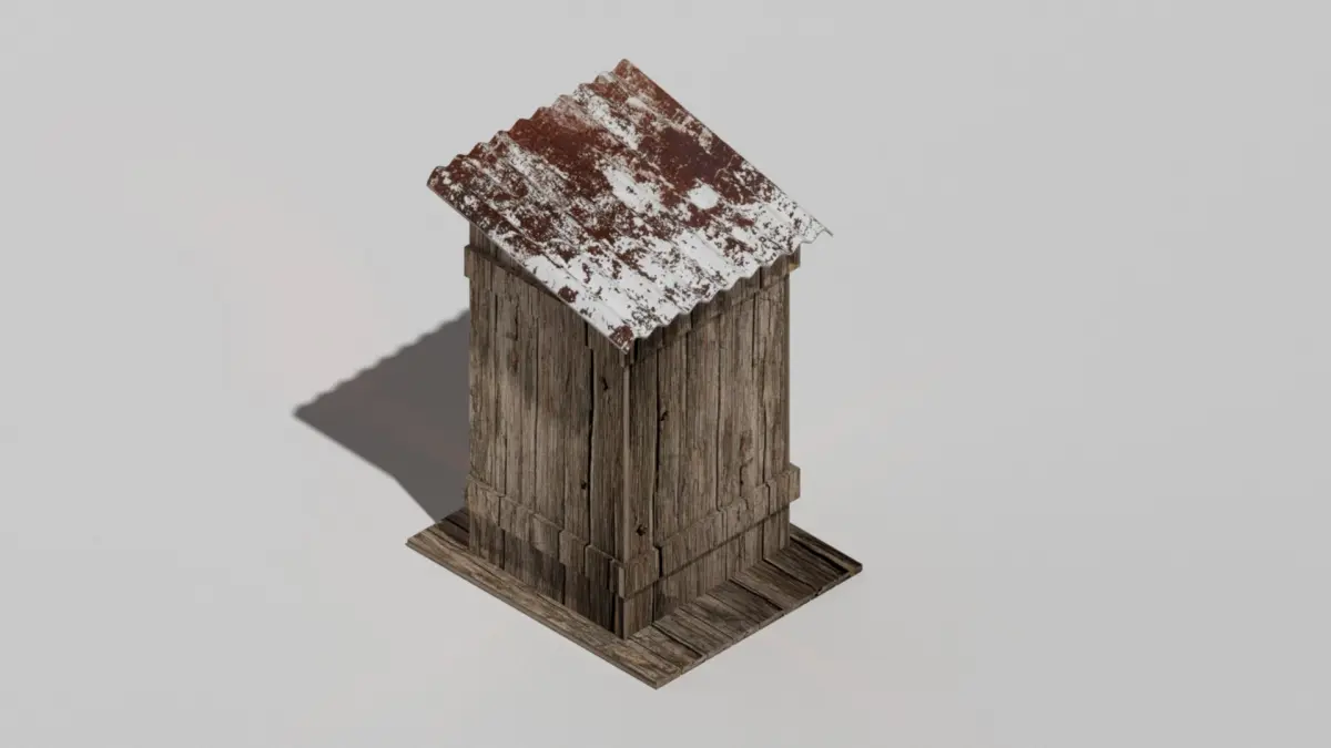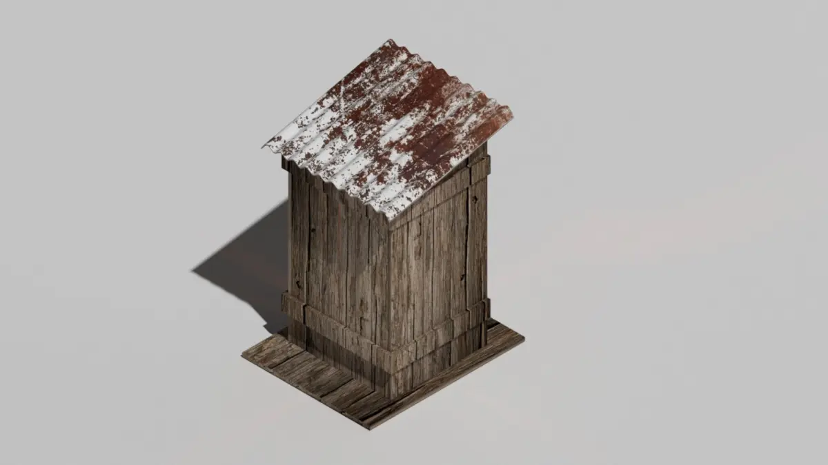 This old rotten wood outhouse is simple and has all textures an materials an looks good in a outside setting such as a clearing in the woods.