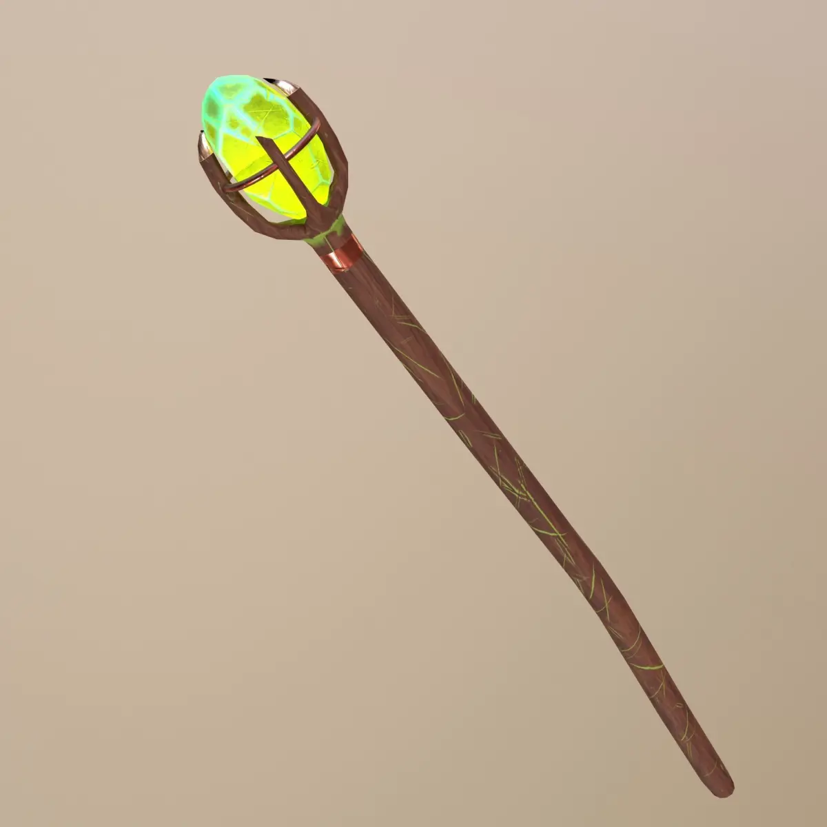 Old wooden staff, PBR, Low-poly (game-ready), Textures