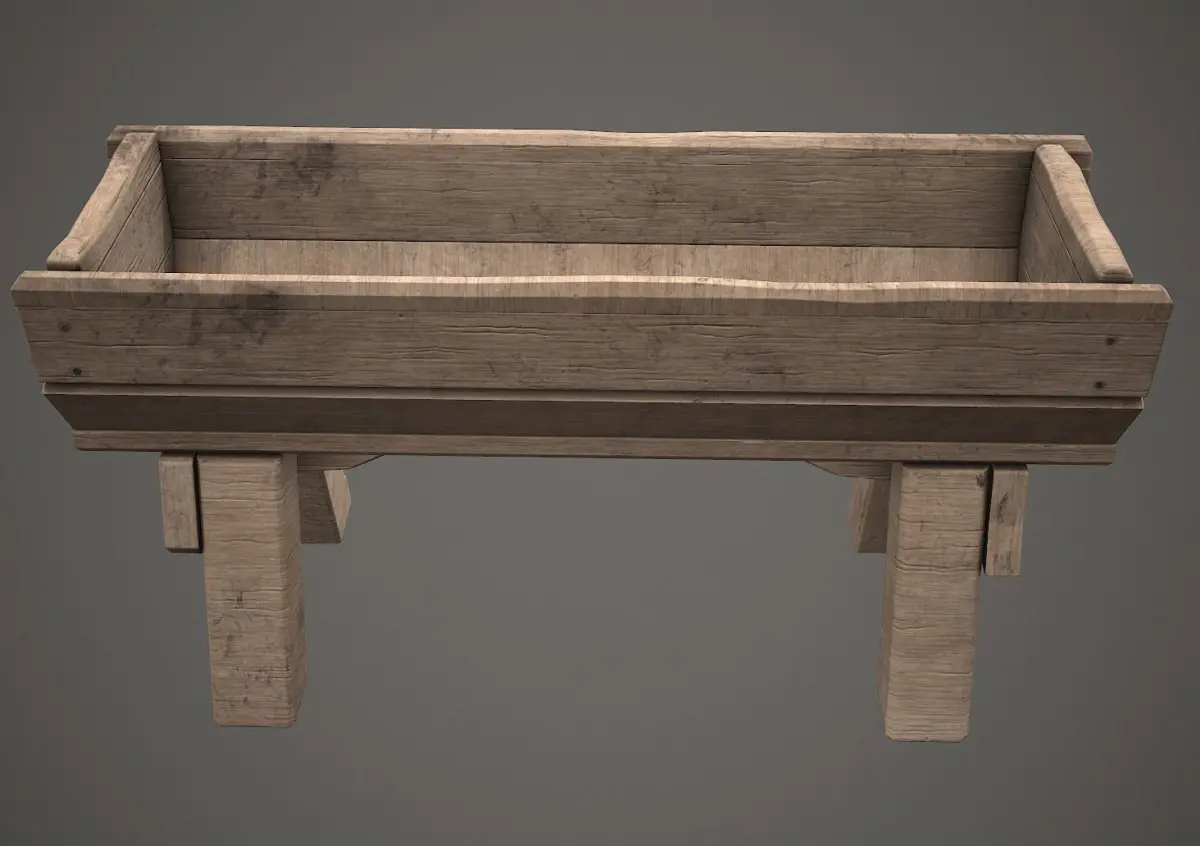Low poly Wooden TroughAll objects and textures named correctly Texture size 2048x2048 - albedo, glossiness, specular, normal One mesh and one material Game ready