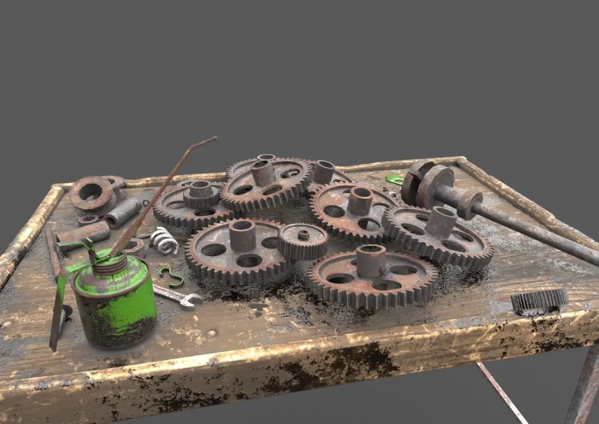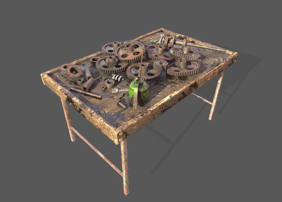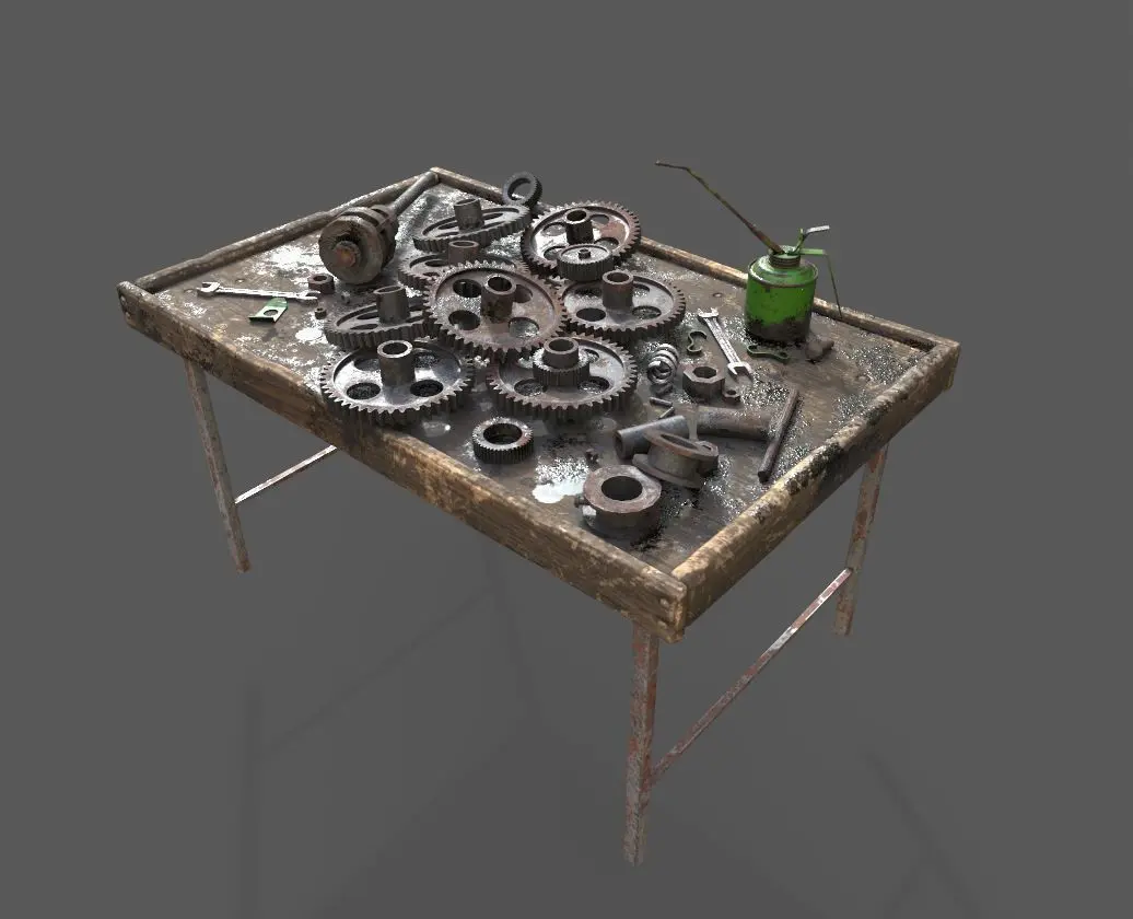 Model of gear workbench .Its unwrapped and non-overlapping.Model has two pbr material and textures. All textures are 4096x4096-2048x2048 in sizes and PNG formats. Maps are(diffuse-specular-normal-glossiness-height).