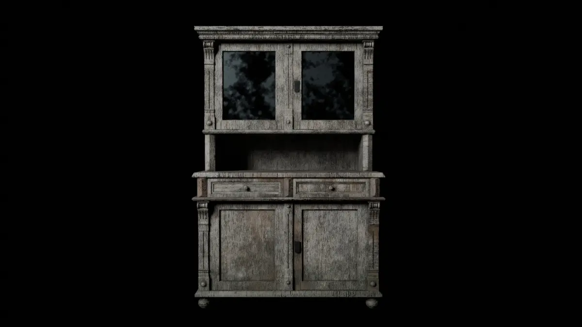 The old kitchen cabinet stands like a silent witness to decades of family meals, laughter, and the steady passage of time. Its wooden frame, once strong and polished, now bears the weary marks of age—deep scratches, faint water stains, and patches where the paint has chipped away to expose the raw wood beneath. The original color, perhaps a warm cream or soft blue, has long since faded, leaving behind a dull, uneven hue that hints at the many hands that have touched it over the years. The edges are smoothed by time, worn down from years of opening and closing, as if the cabinet itself has softened with age.