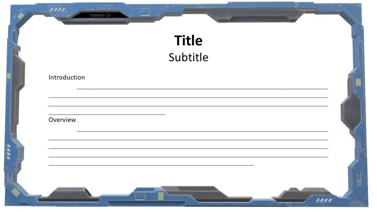This is a realistic industrial looking frame made with Blender and Substance Painter. It has a few display screens, lights, and painted metal textures with screws, switches, and hanldes. It's a boarder frame that's supposed to look somewhat like machinery. It can also be used as a window, or an opening.