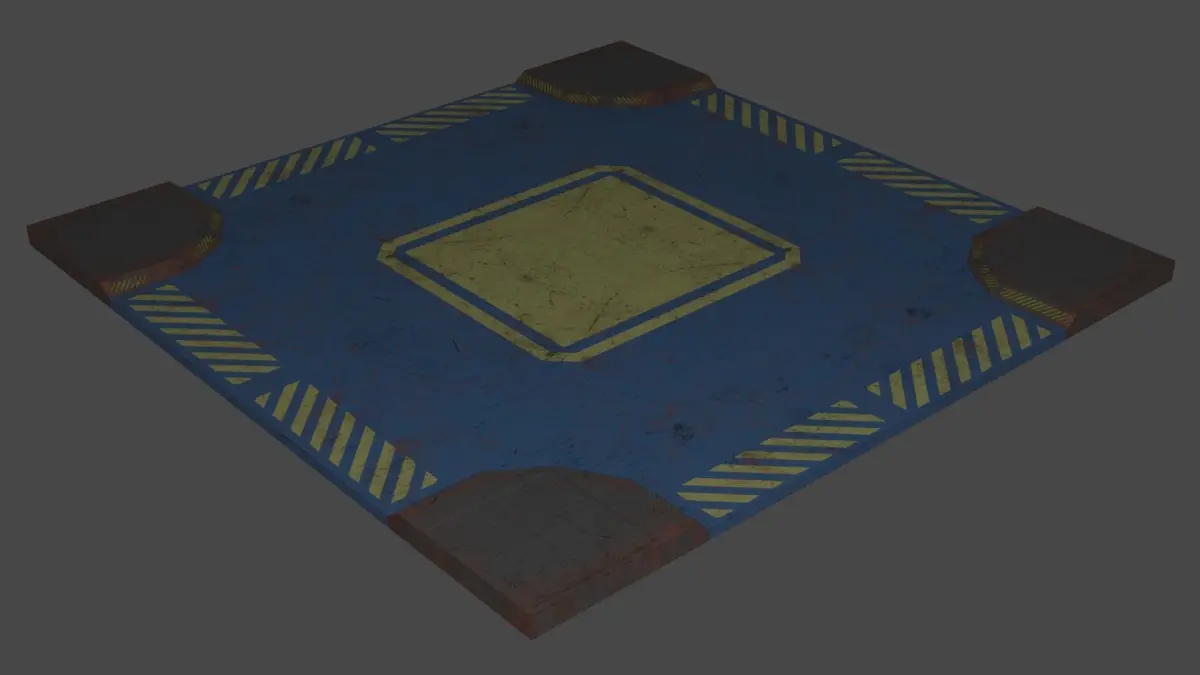 Basic old landing pad, that is tilable. And is available in many formats.It's been made with Blender and substance painter. It has scratch marks and rust on it. It's a good landing pad for 1 or for many ships. Can make a whole grid of them.It's basic and low tech, but realistic. Not very many polygons in this 3D model.It is printable, can look great being printed off as a 3D model, and would help your aircraft look great too.