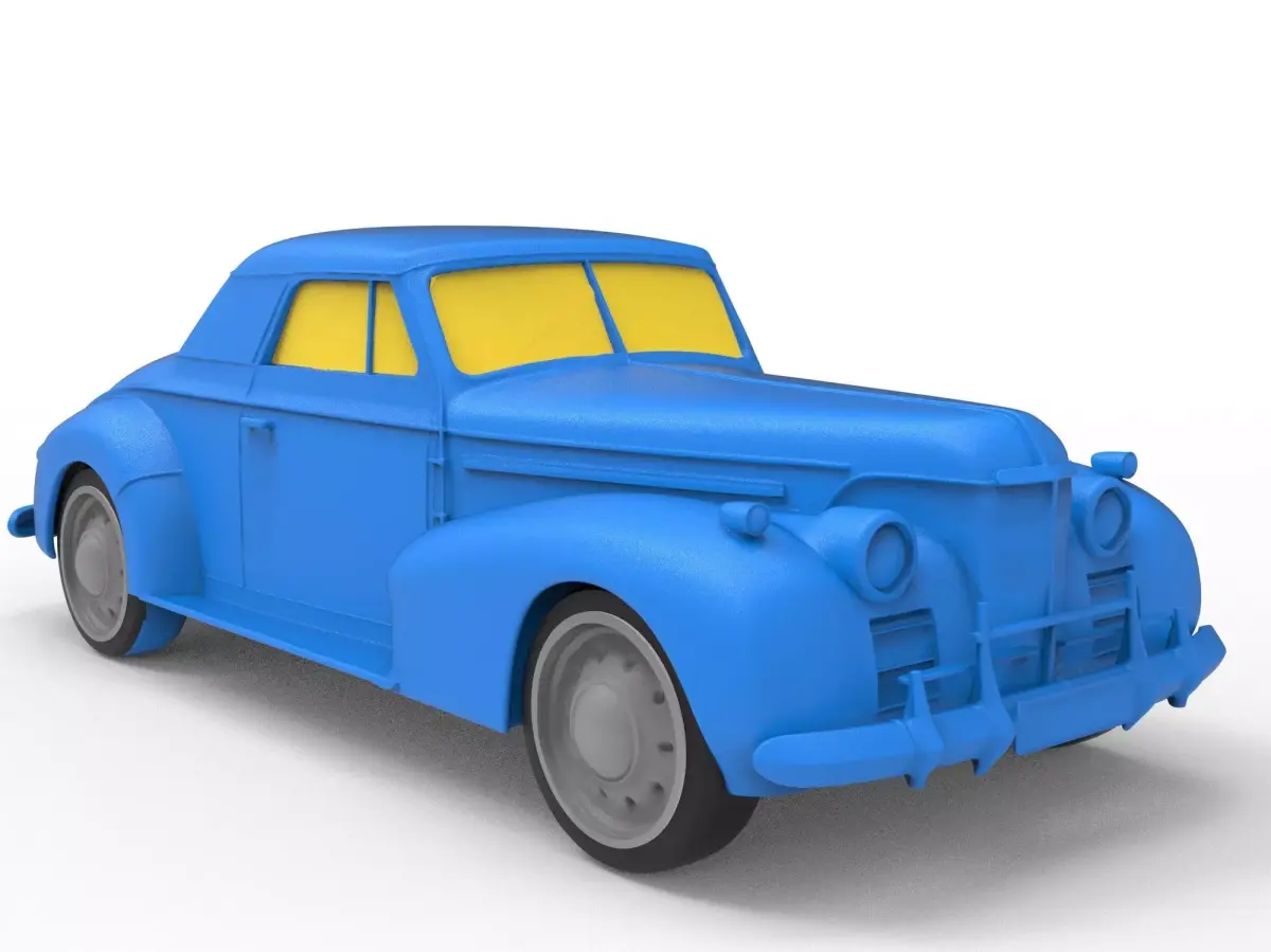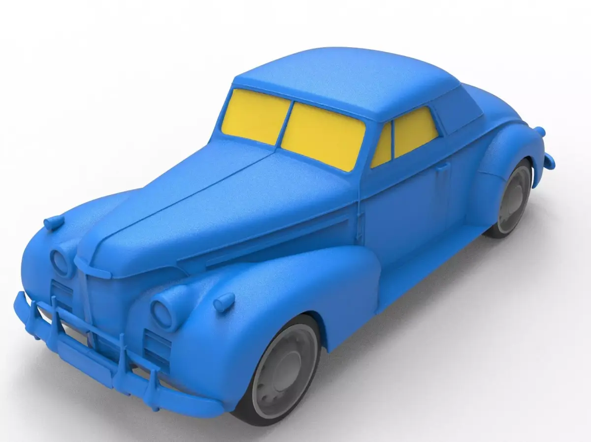 The car model is designed as a single-piece 3D printable object.The body and wheels are included in one unified model file.
